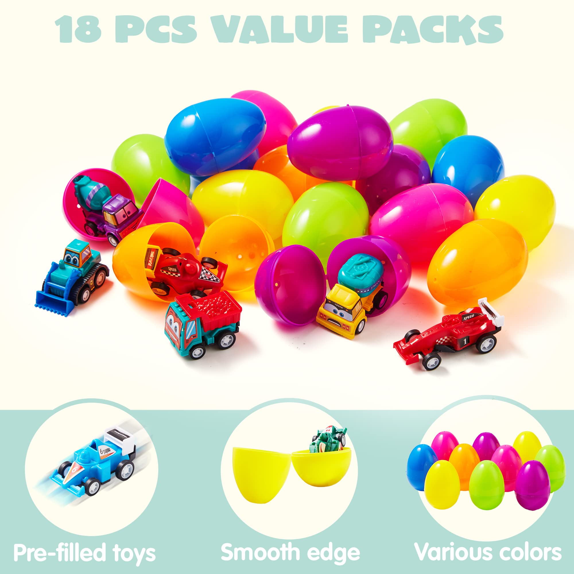 18 Pcs Pre-Filled Easter Eggs with Pull Back Cars