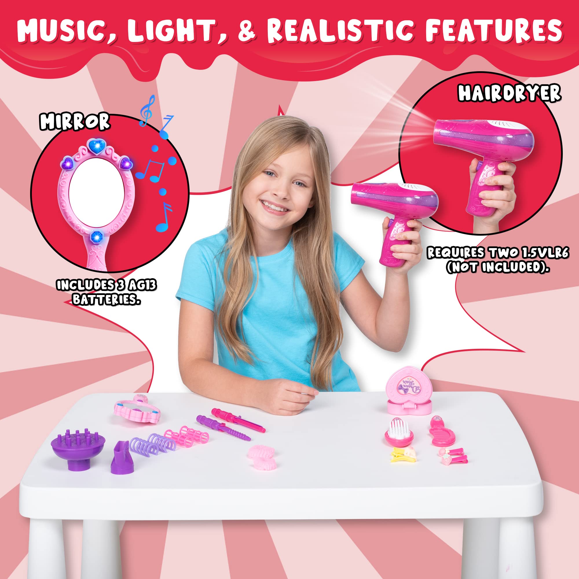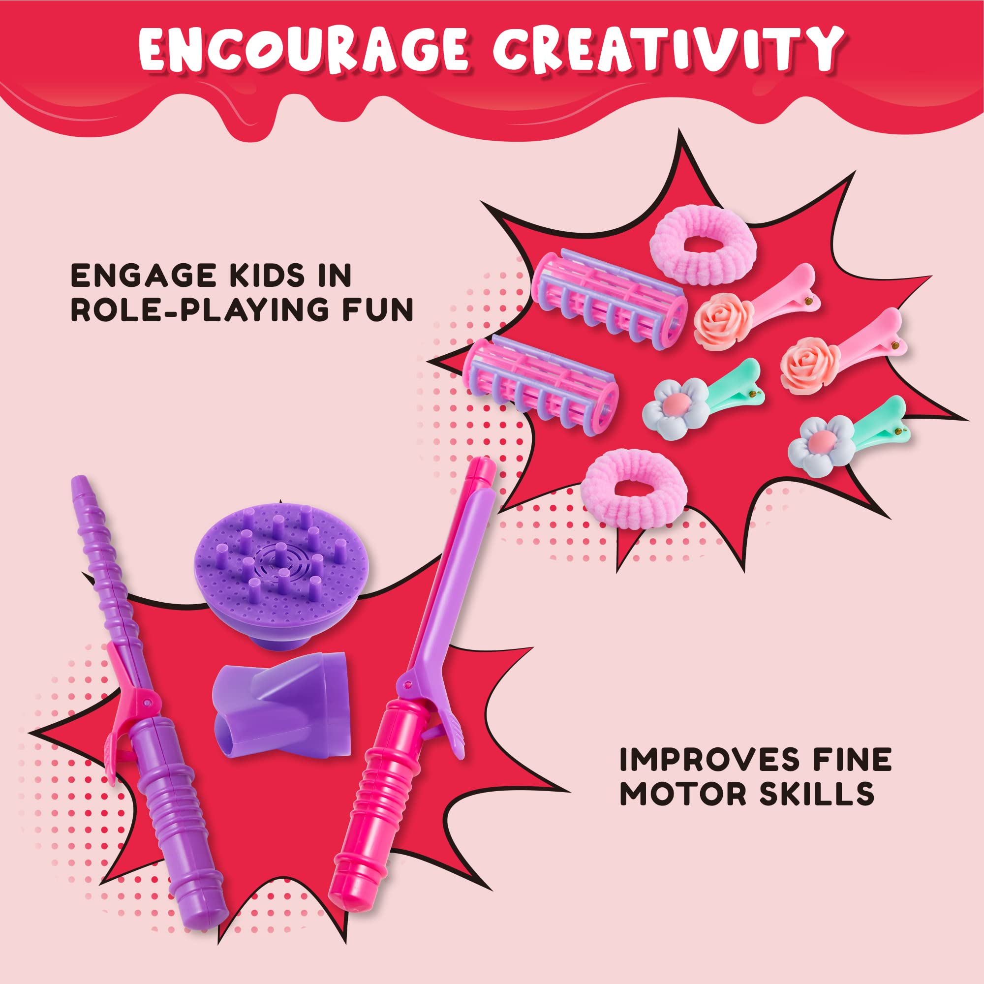 17Pcs Beauty Salon, Pretend Play Doll Hair Stylist Toy Kit
