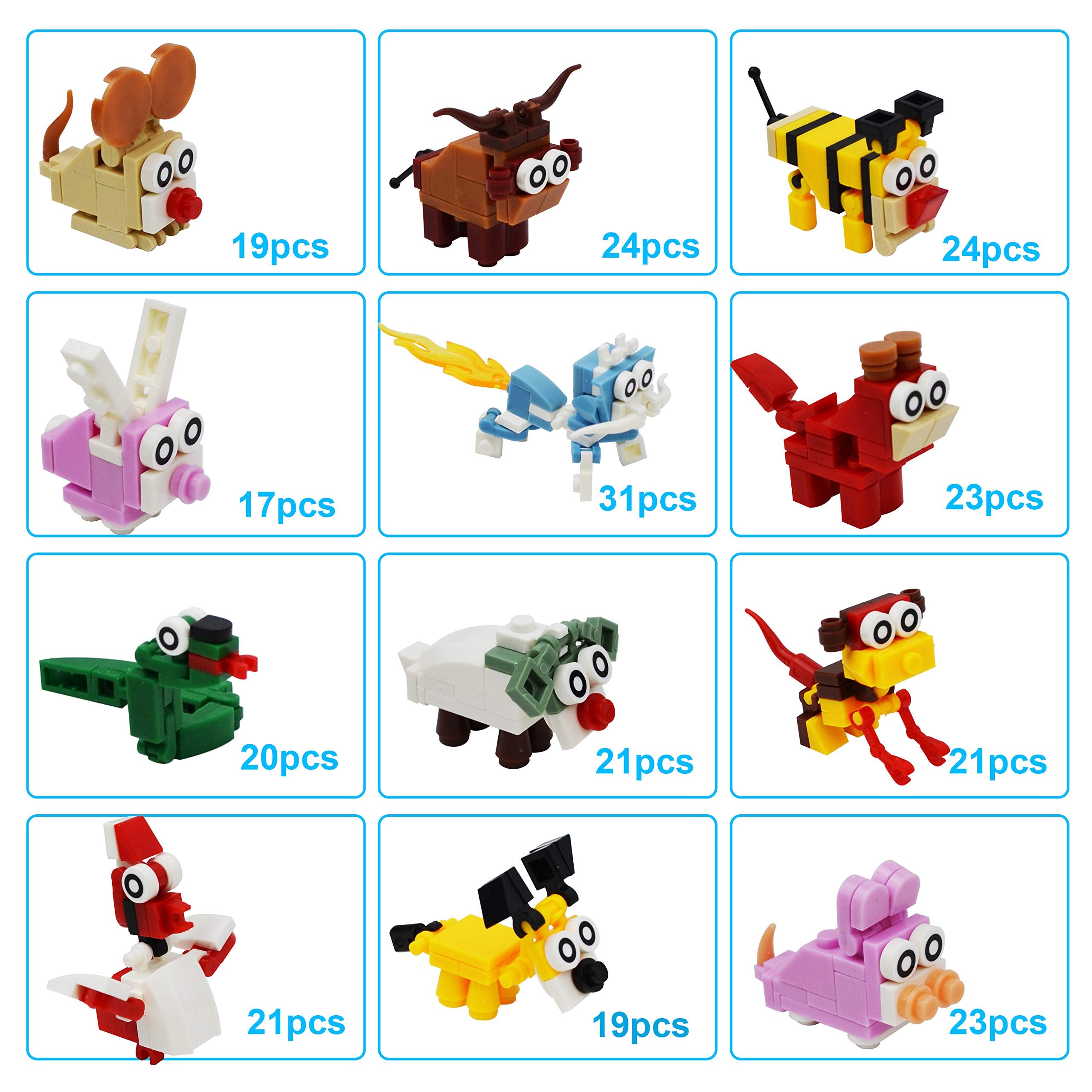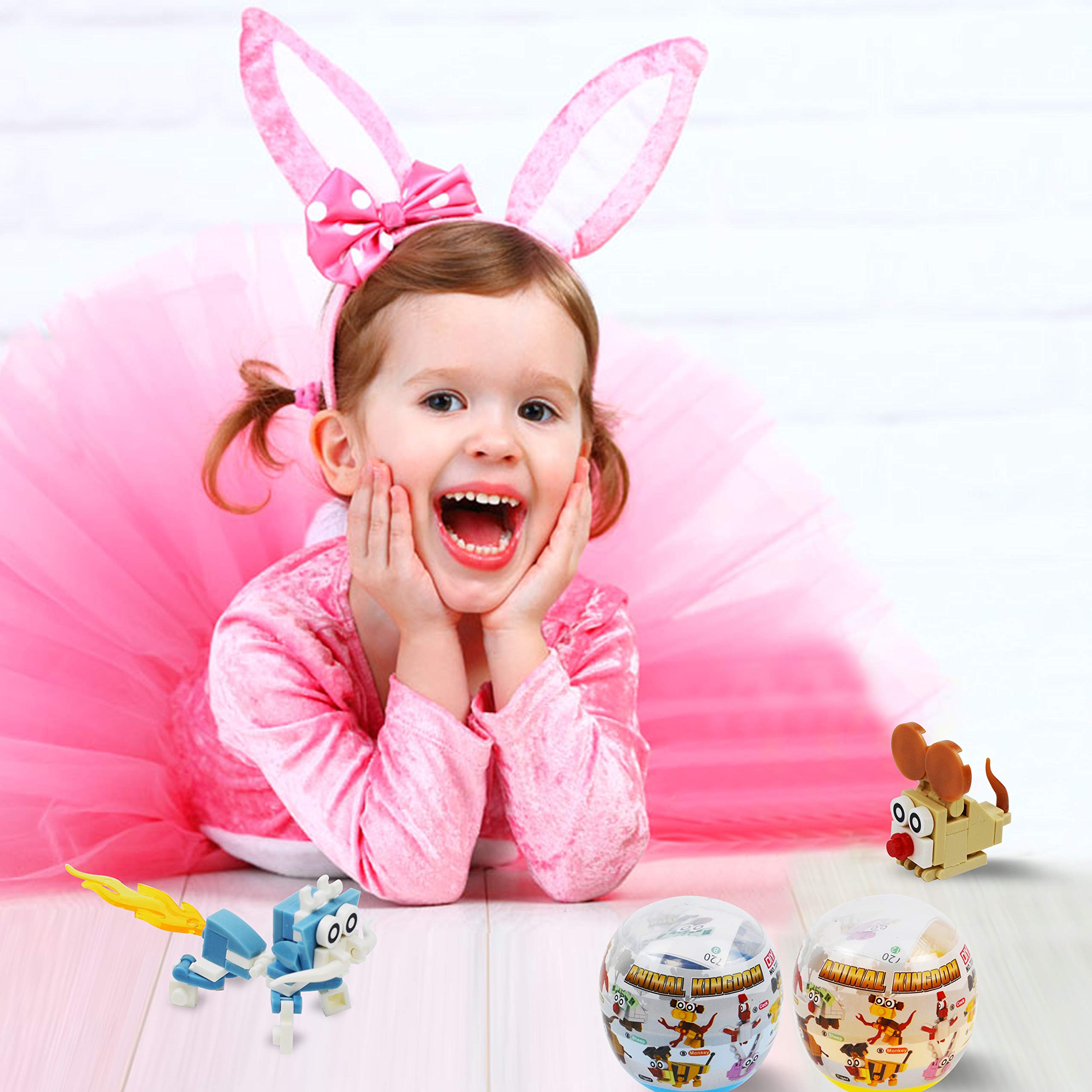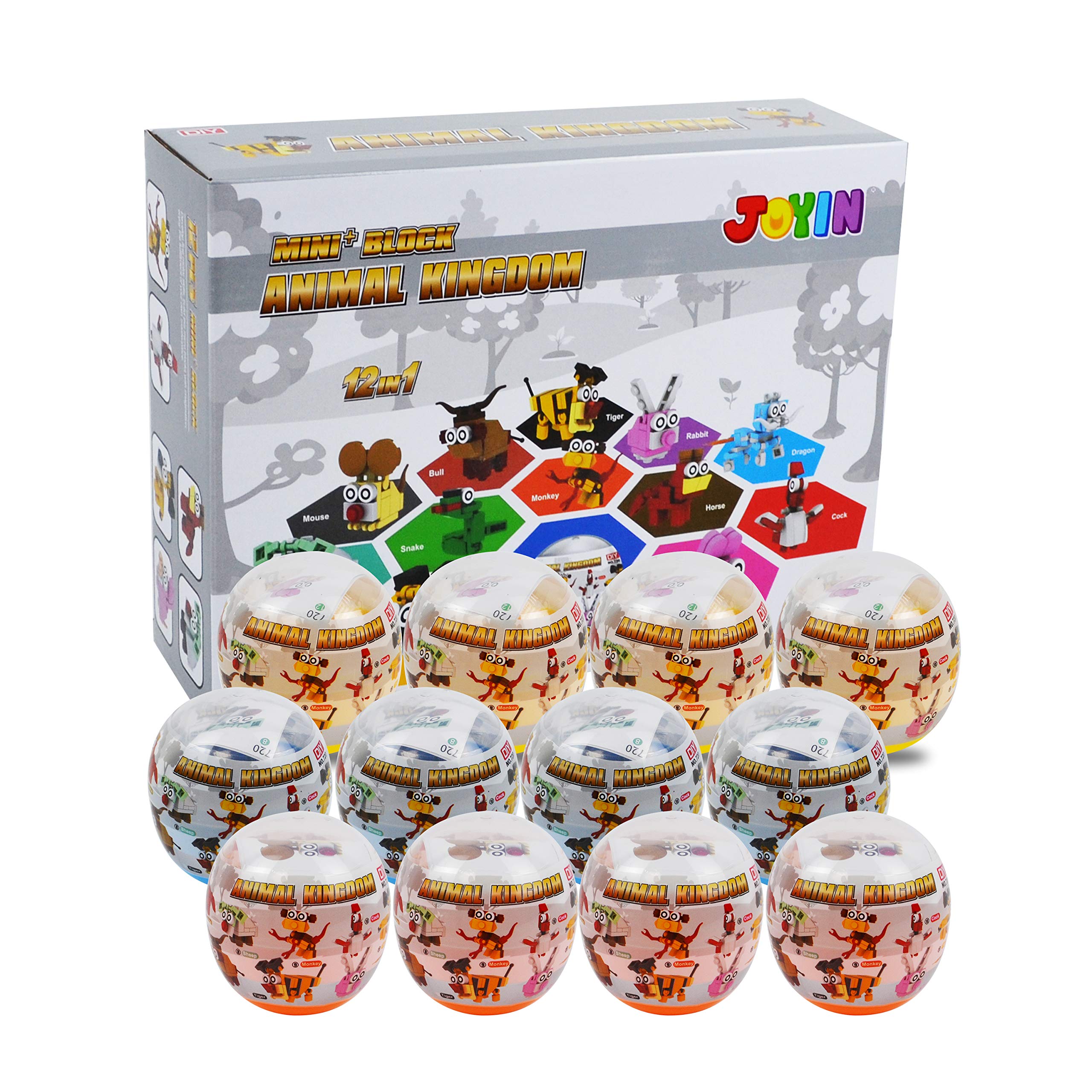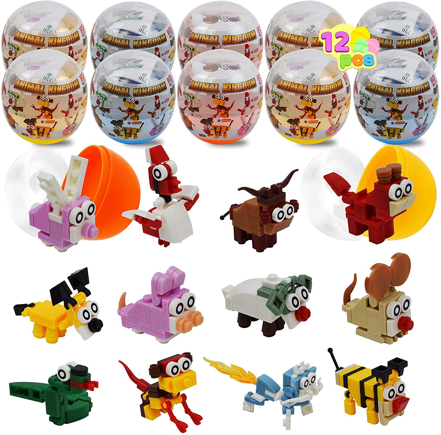 12 Pcs Surprise Eggs with Animal Building Blocks, Party Favor, Classroom Prize
