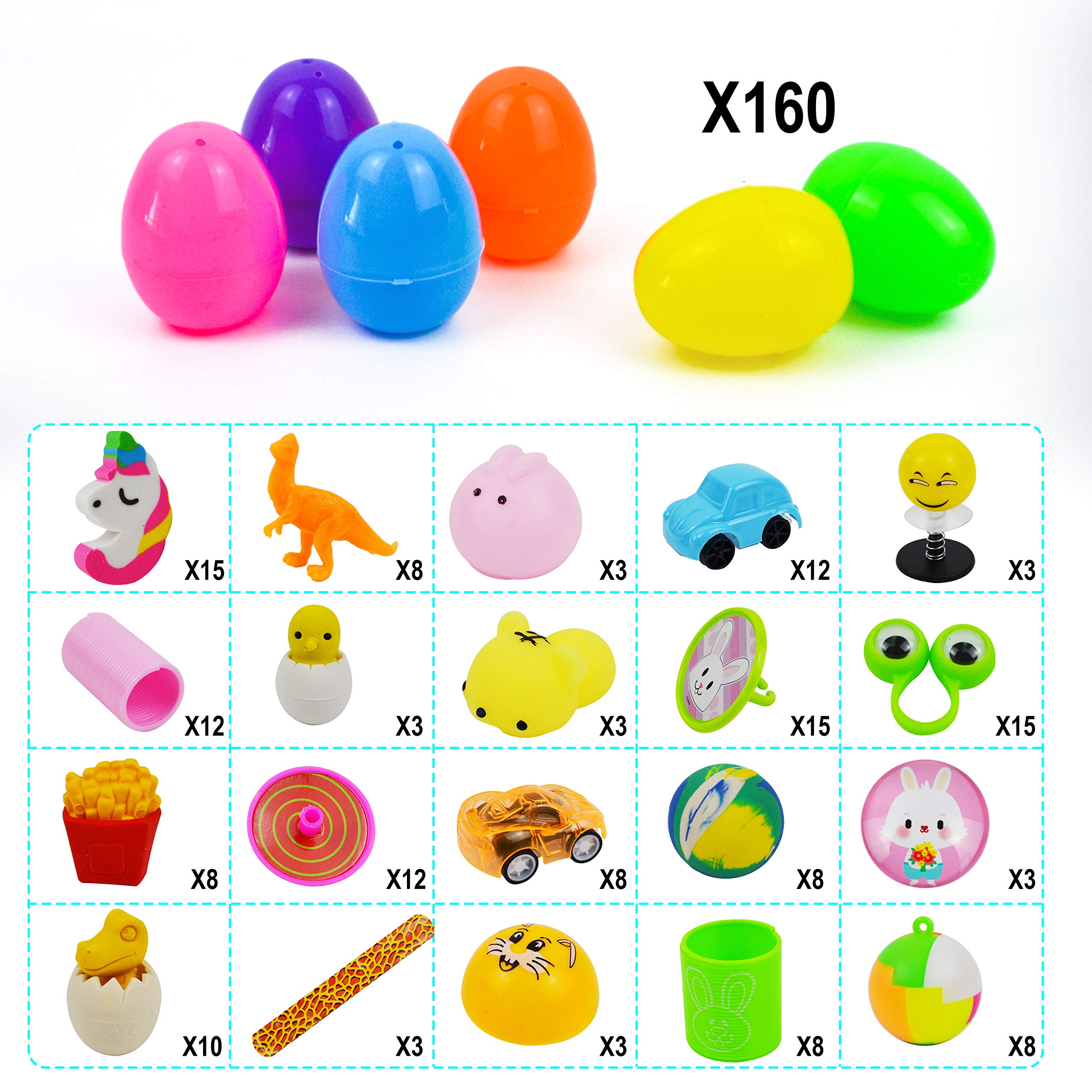 160 PCS Prefilled Easter Eggs with Assorted Toys, Stuffed Egg Hunt Supplies, Basket Stuffers Fillers, Classroom Prizes, Party Favors