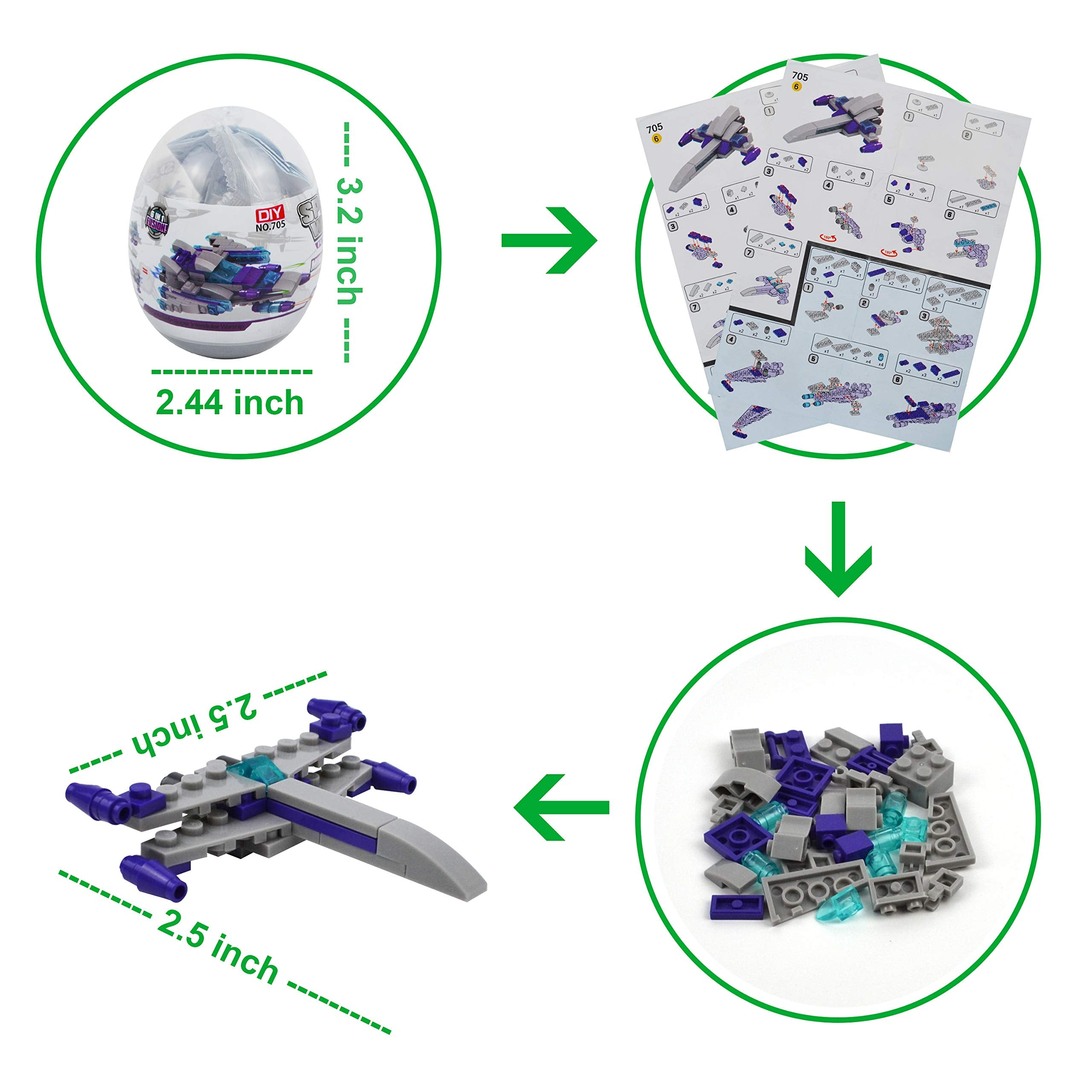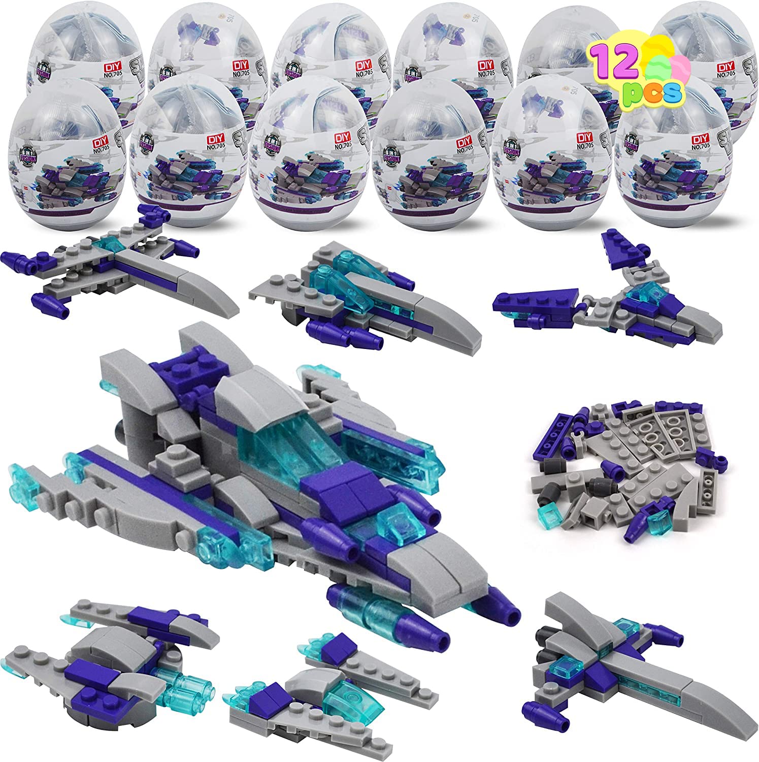 12 Pcs Prefilled Surprise Eggs with Space Ship Building Blocks Party Favor, Classroom Prize Supplies