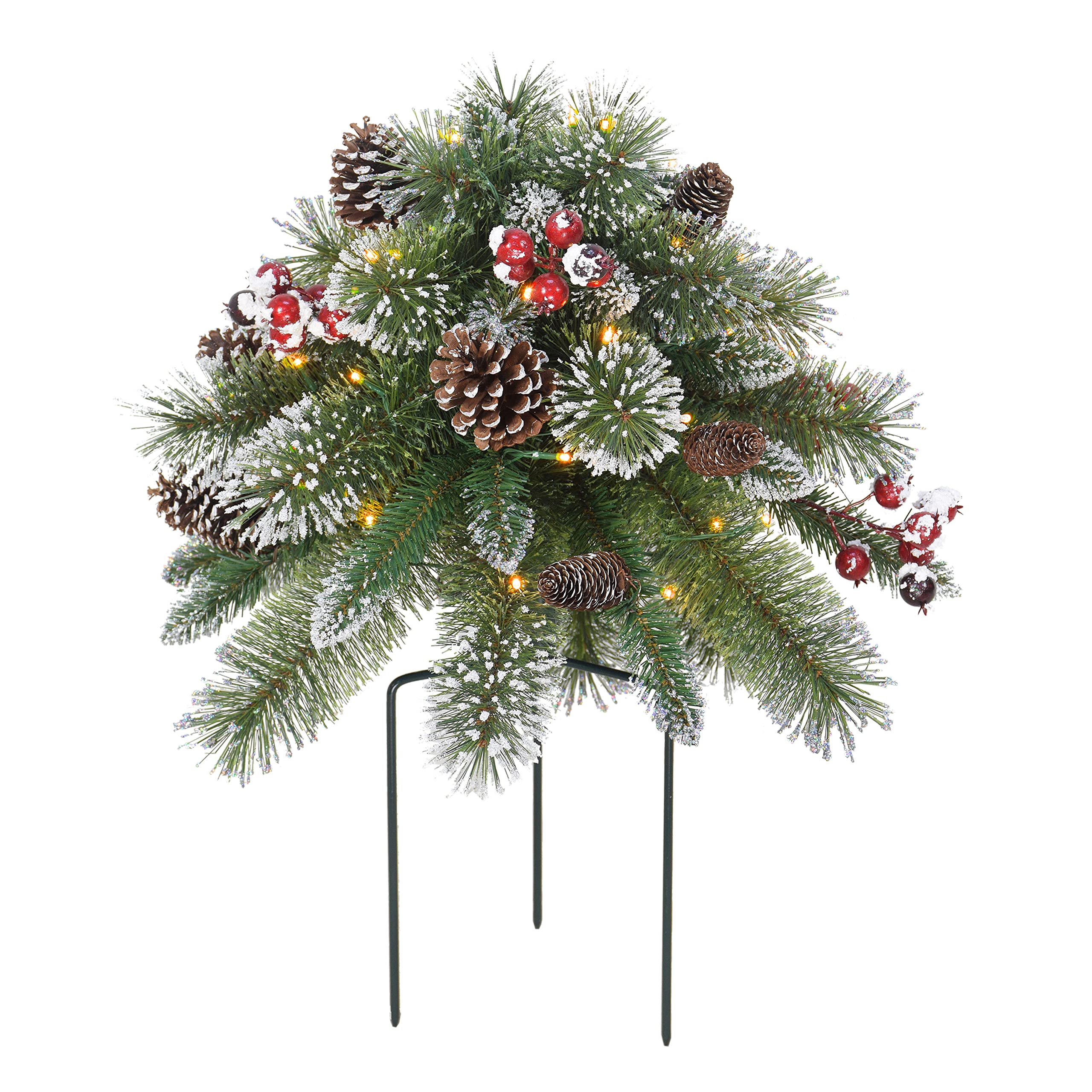 18" B/O Snowy Urn Filler, 48 Tips, 35 Warm White LED Lights,(3 x AA Batteries not Included), 6/18 Hours On/Off Time Function, Pine Cones & Berries