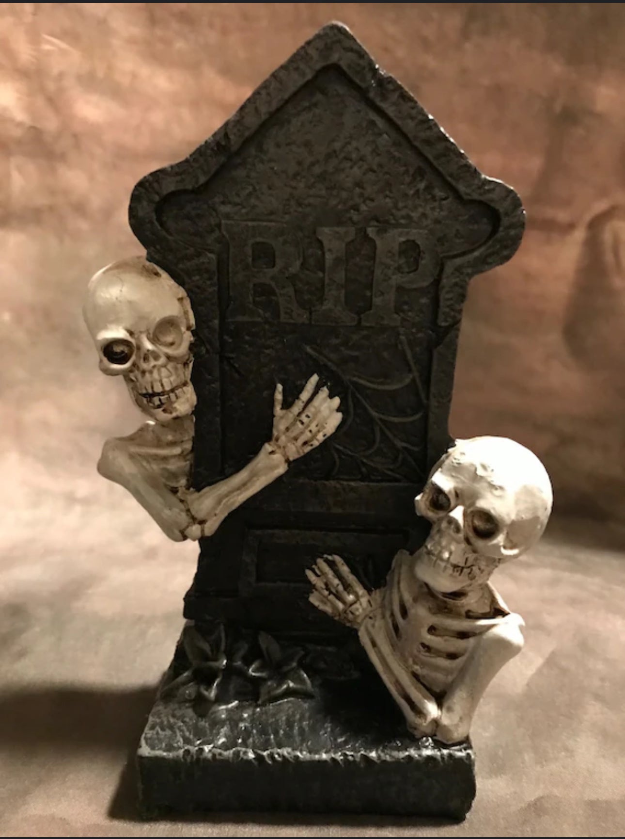RIP headstone with skeletons Halloween decor 6 inch resin