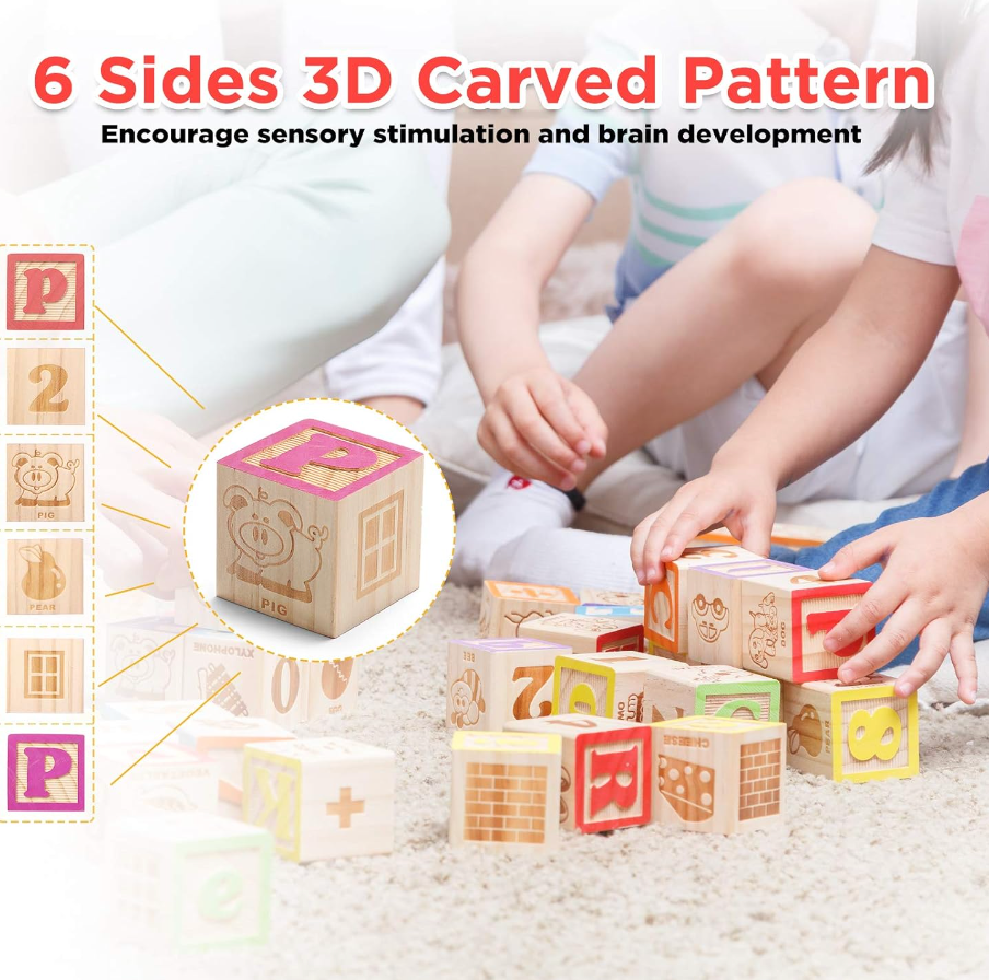 SainSmart Jr. Wooden ABC Blocks 40PCS Stacking Blocks