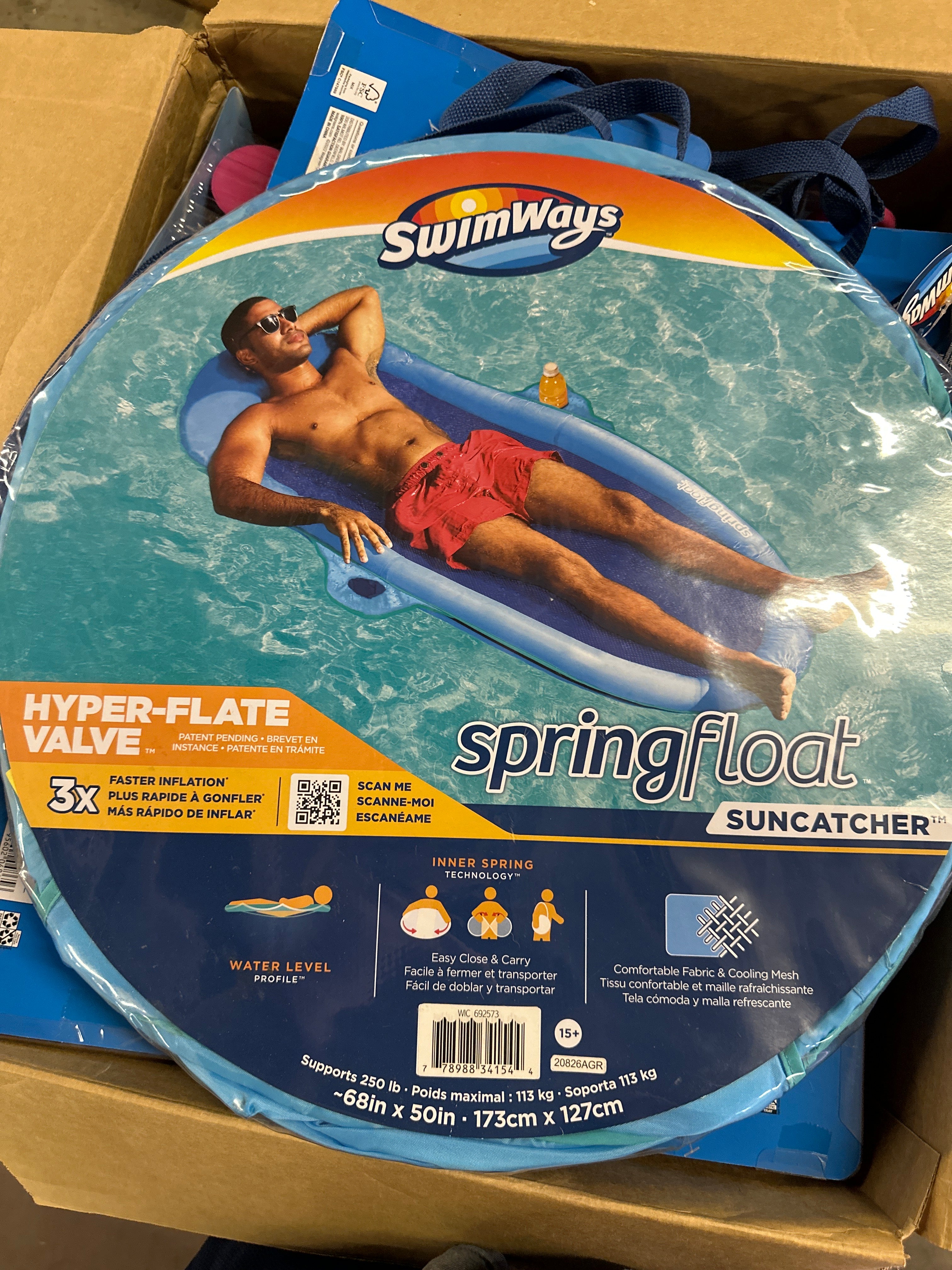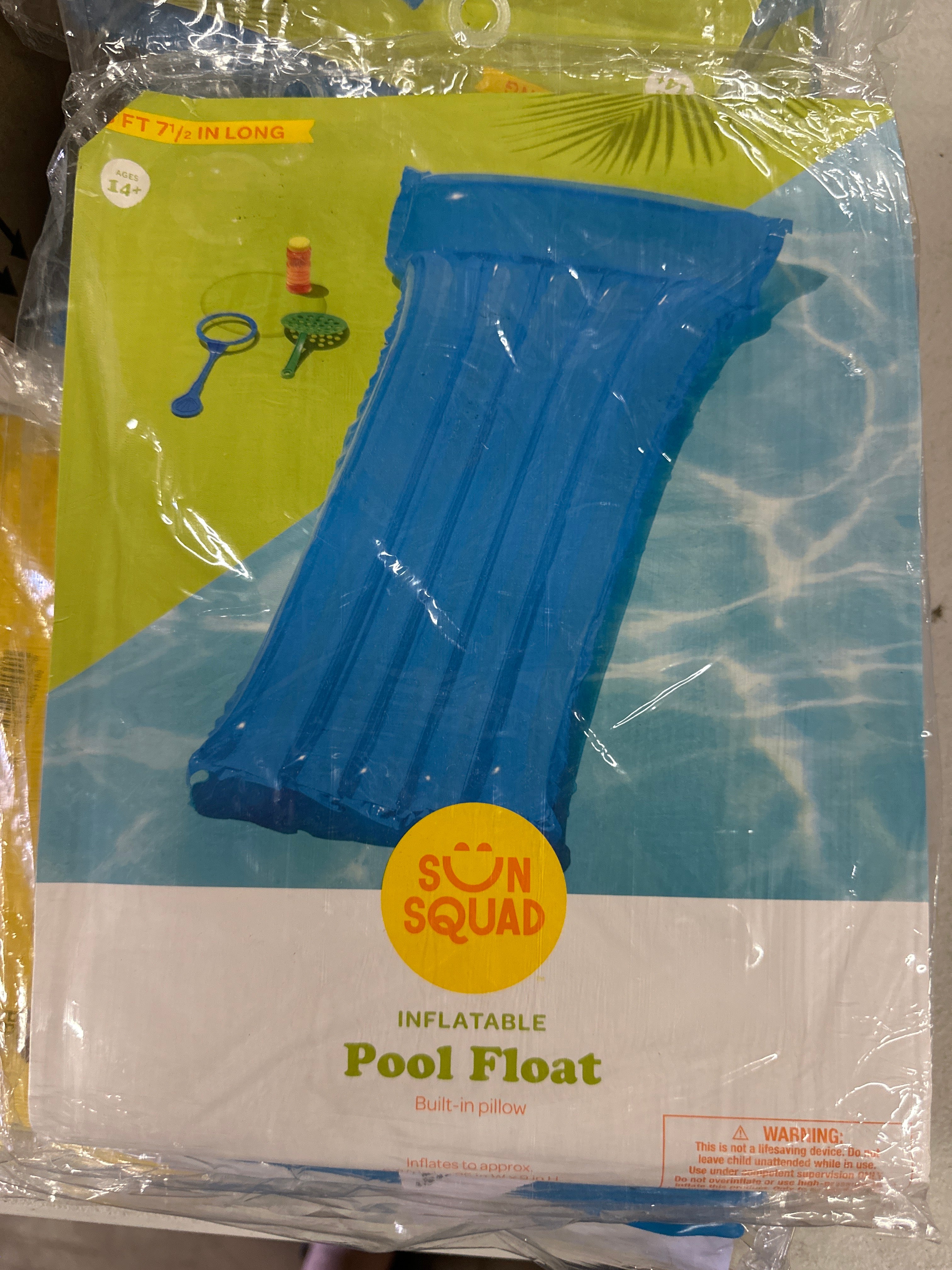 Sun squad inflatable pool float with built-in pillow 5‘7“ long blue