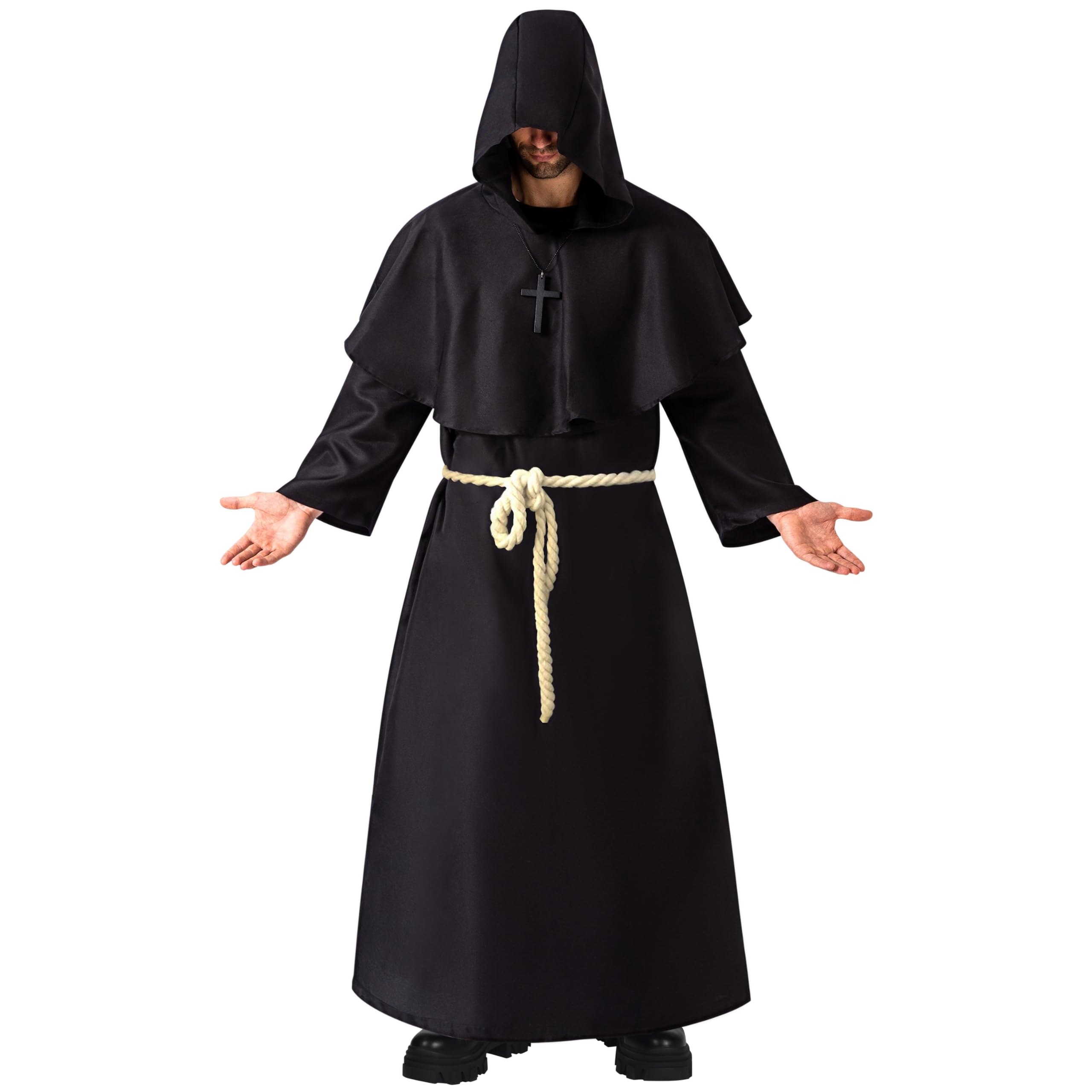 Adult Medieval Hooded Monk Renaissance Priest Robe Halloween Cosplay Costume