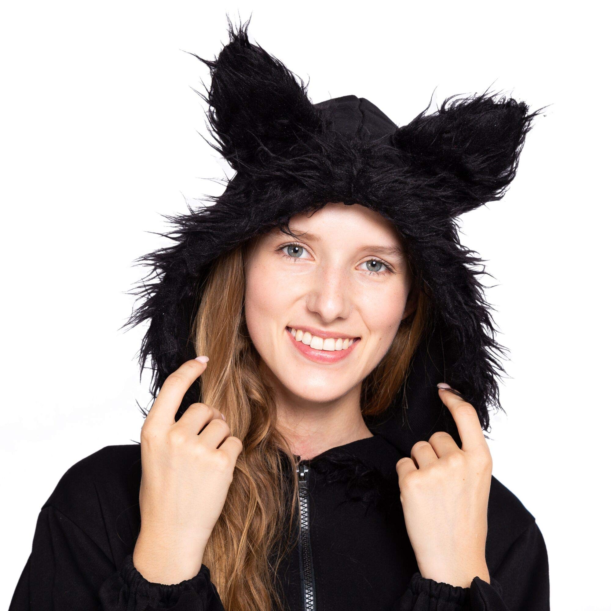 Adult Black Goth Gothic Bat Zip Hoodie Halloween Cosplay Role Play Costumes