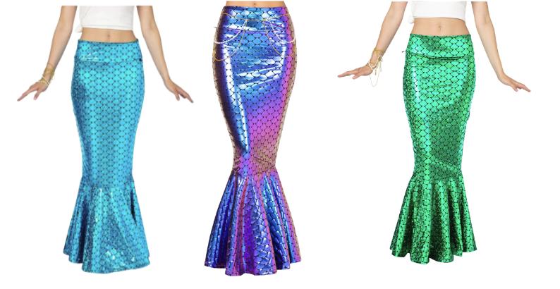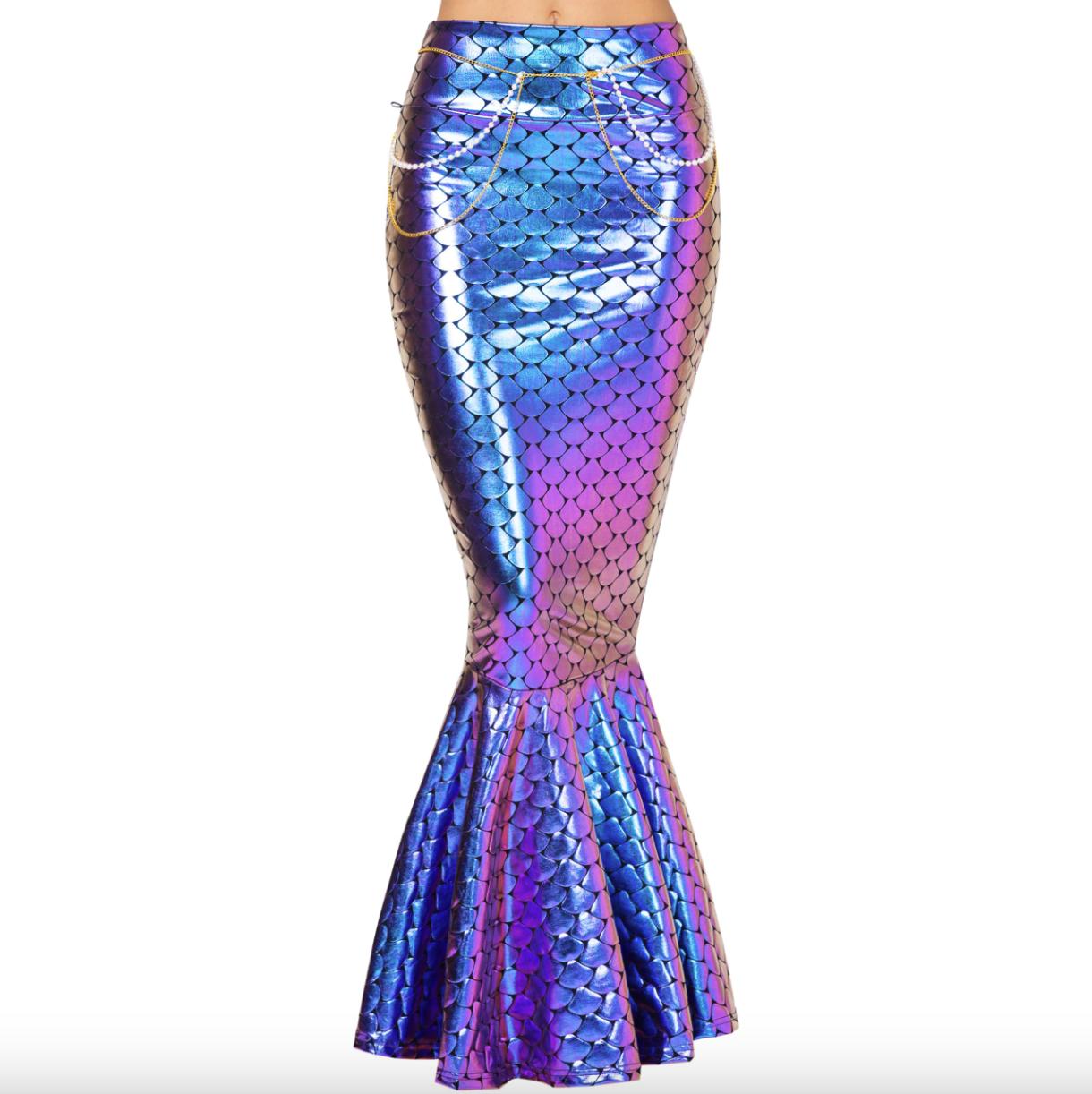 Adult Metallic Hologram Shiny Mermaid Skirt Costume Halloween Role Play