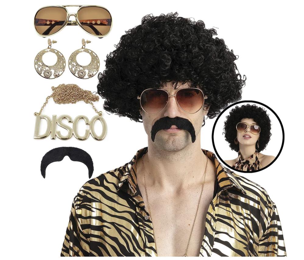 Adult Afro Wig & Beard Disco Hippie ob Ross 70s/80s/ Halloween Cosplay Costumes
