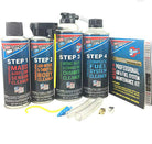 Cleans all major air-intake and fuel system components in all fuel-injected, gas-powered vehicles, including modern GDI and turbocharged engines. Improves hard starting, rough idle, poor fuel economy, and overall drivability. Proprietary universal application system works with both air-intake and manifold vacuum injection systems. Safe on catalytic converters and oxygen sensors. Kit contains: 1- 6 oz. (170 g) Part #2641 – Step 1 Professional Mass Airflow Sensor Cleaner (aerosol) 2- 6 oz. (170 g) Part #2642 – Step 2 Professional Air Intake & Throttle Body Cleaner (aerosol) 3- 16 oz. (453 g) Part #2643 – Step 3 Professional Intake Valve & Combustion Chamber Cleaner (aerosol) 4- 16 fl. oz. (473 mL) Part #2644 – Step 4 Professional Complete Fuel System Cleaner (pourable liquid) 5- Set of intake valve and combustion chamber cleaning application accessories