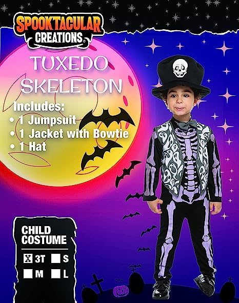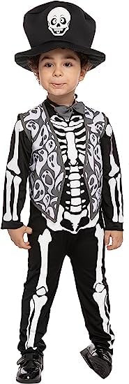 Kids Tuxedo Skeleton Halloween Cosplay Dress up Pretend Play Costume