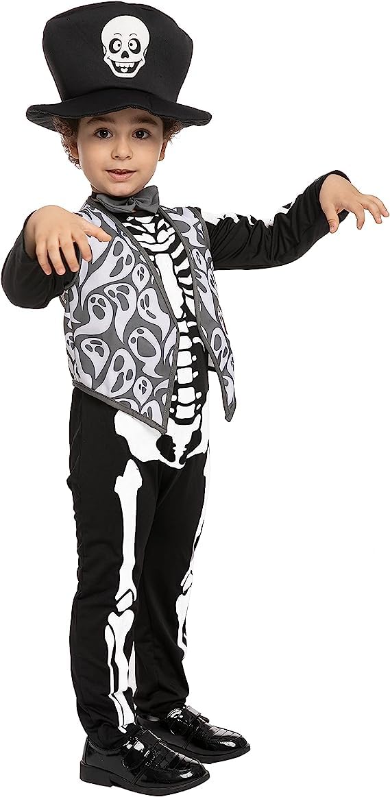 Baby Skeleton Costume with Black Hat - Halloween, Dress up, Party, Cosplay