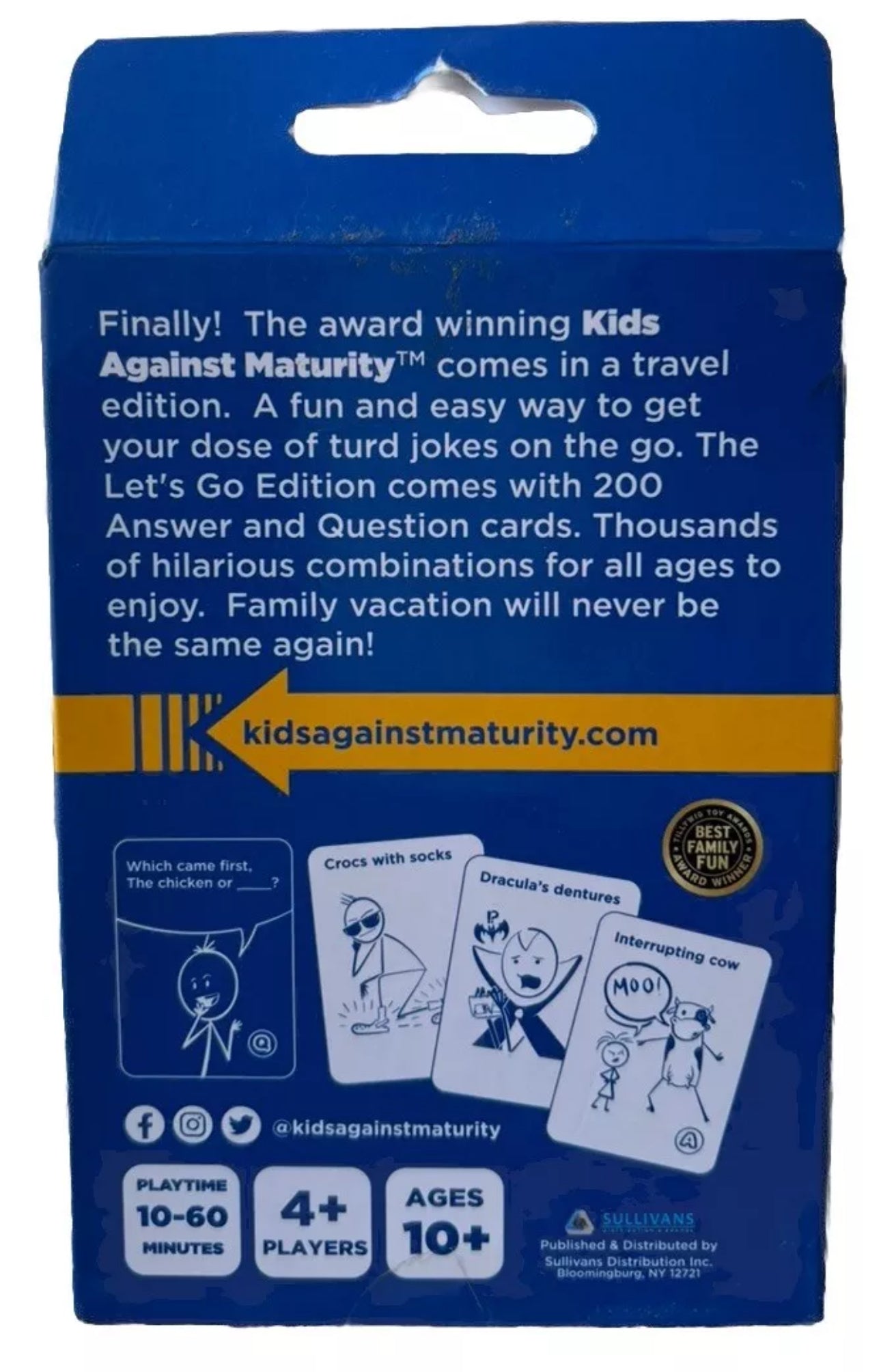 - Product: Kids Against Maturity Let's Go Travel Edition (Item No. KAM-CORE-2).