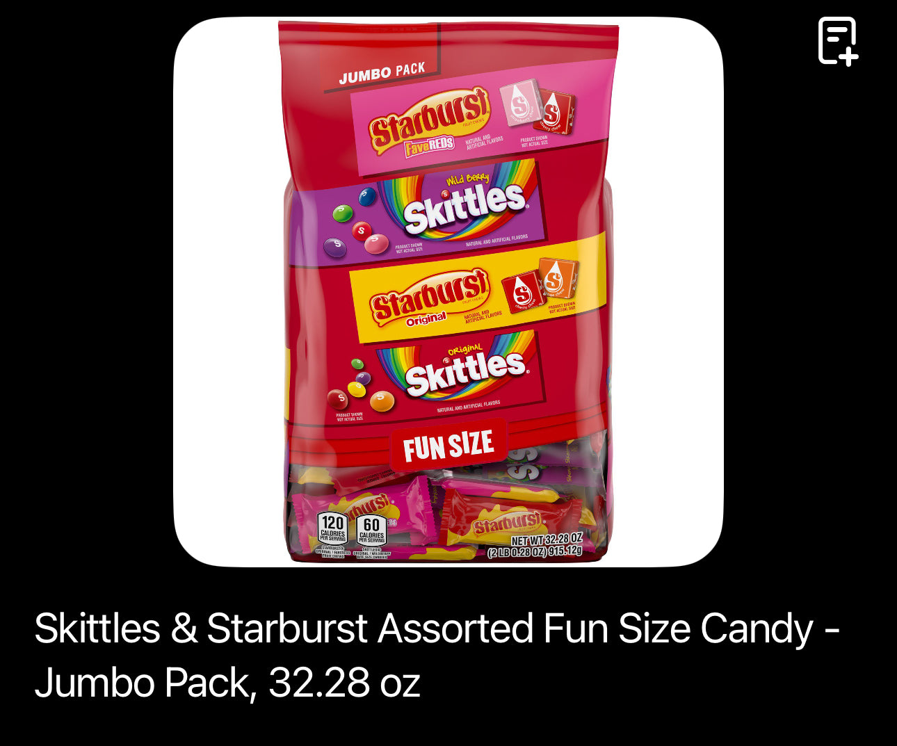 Skittles & Starburst Assorted Fun Size Candy - Jumbo Pack, 32.28 oz