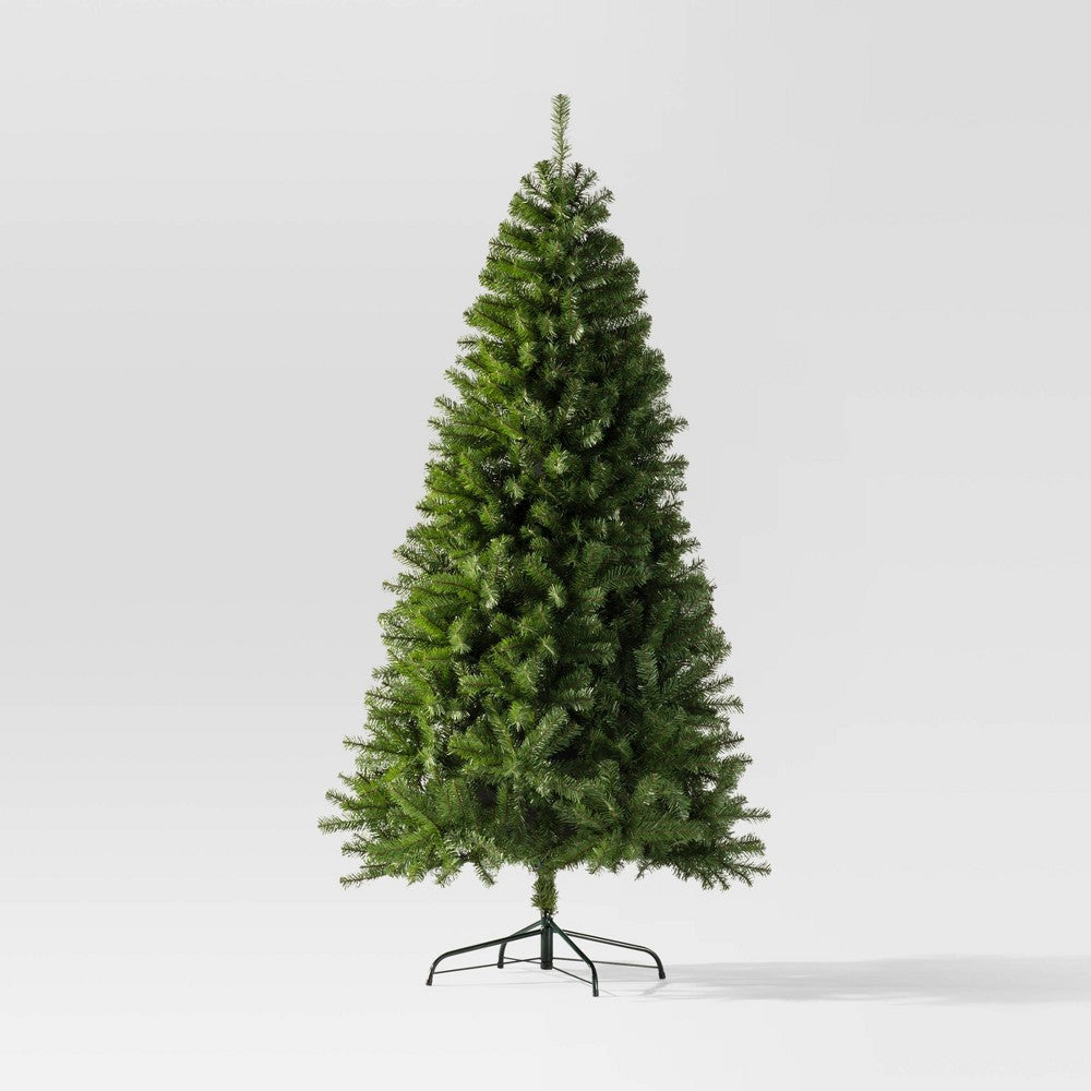 Make sure your holiday decor is the talk of your circle of friends with this Unlit Alberta Spruce Artificial Christmas Tree from Wondershop?. This 6.5-foot unlit Alberta spruce tree features lush green flame-resistant branches that mimic the real thing and provide enough space for all your ornaments. It's suitable for indoor spaces and includes a metal base for stable placement on the floor. Add colored lights, red tinsel, and whimsical ornaments for a playful look, or go sleek with white lights and shiny gold and silver ball ornaments. Welcome to the Wondershop?.