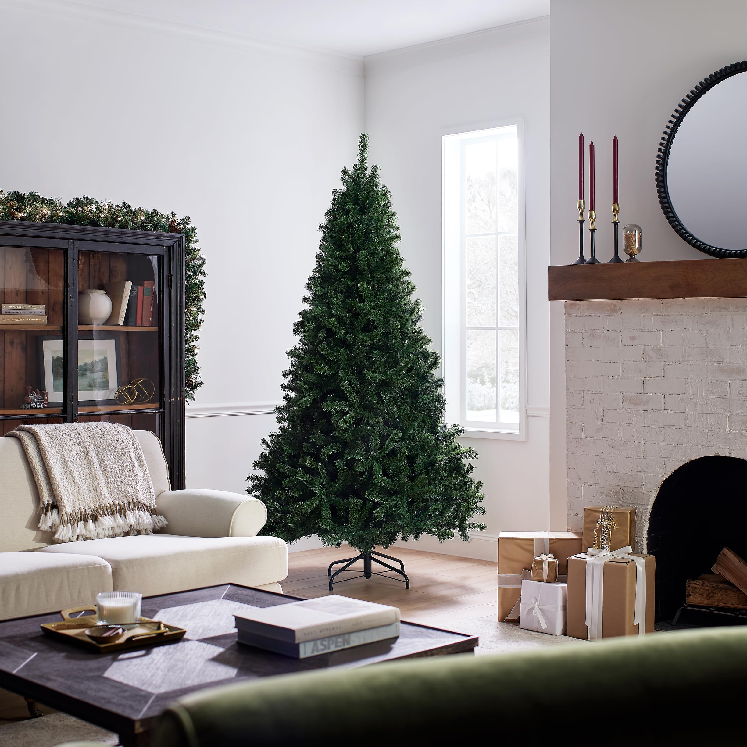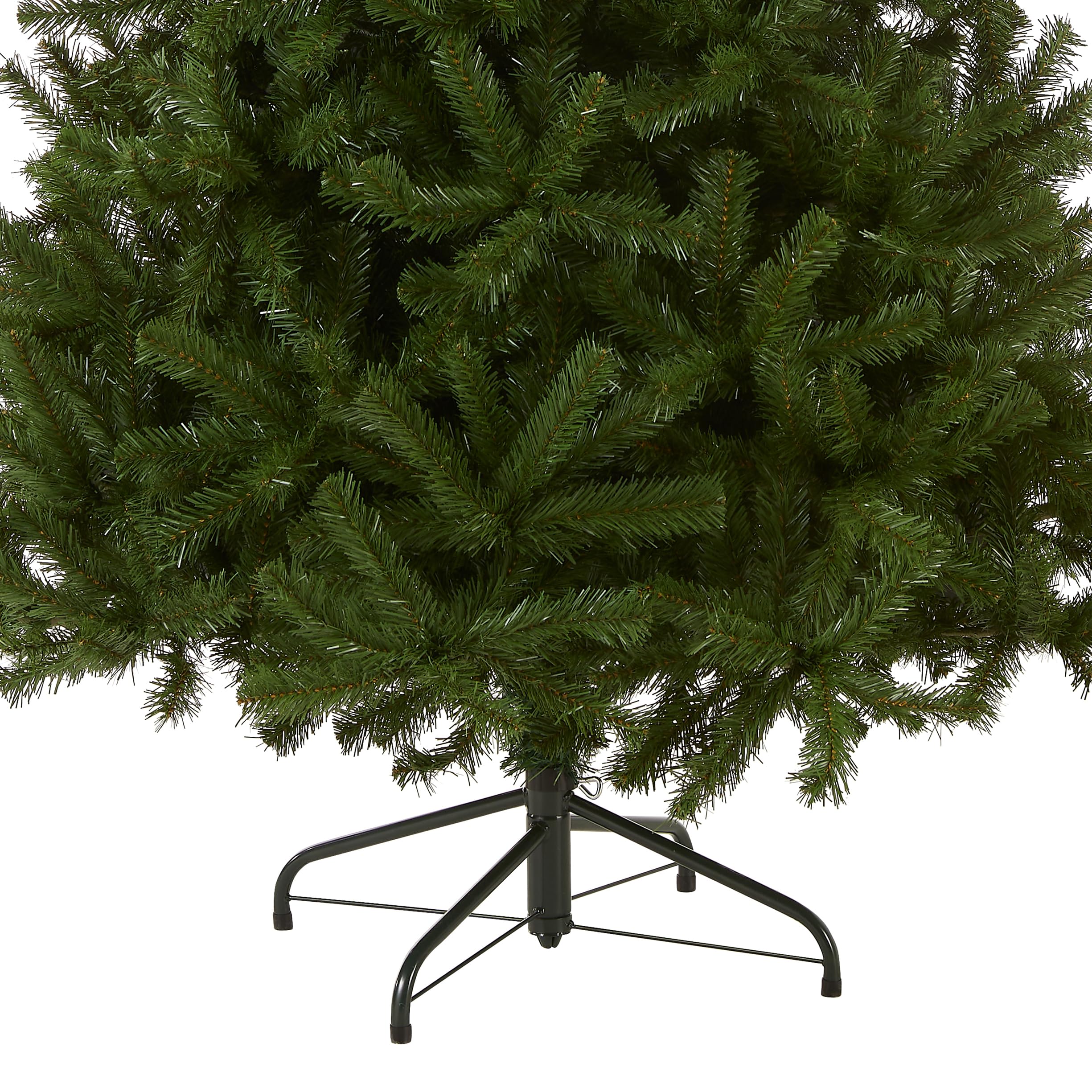 This North Valley Spruce Full Pre-Lit Artificial Green Christmas Tree is 7.5 feet tall with a 52 inch base diameter. Featuring hundreds of individually crafted branch tips to create full bodied branches, this tree is designed to look and feel lifelike.