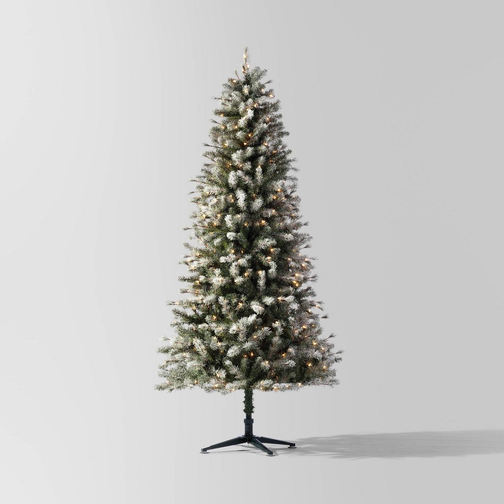 Add wintery charm to your seasonal display with this Pre-lit Lightly Flocked Taos Douglas Fir Artificial Christmas Tree from Wondershop.