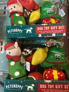 Christmas Dog toy pack, 5 count toys, Elf, tree, gift, ball, rope with ornaments.