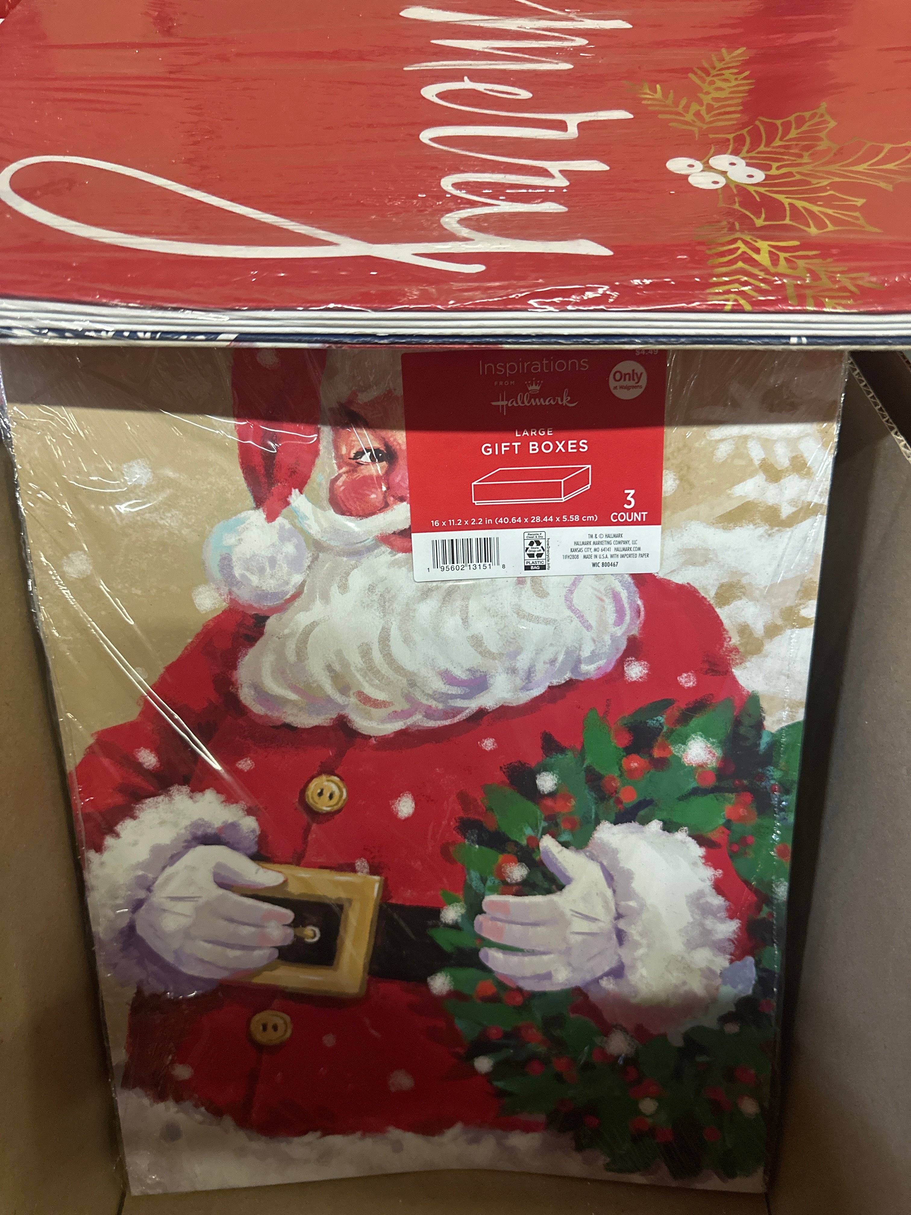 Christmas gift boxes 3 count Large 16x11x2 Santa, merry Christmas, blue w/snowflakes