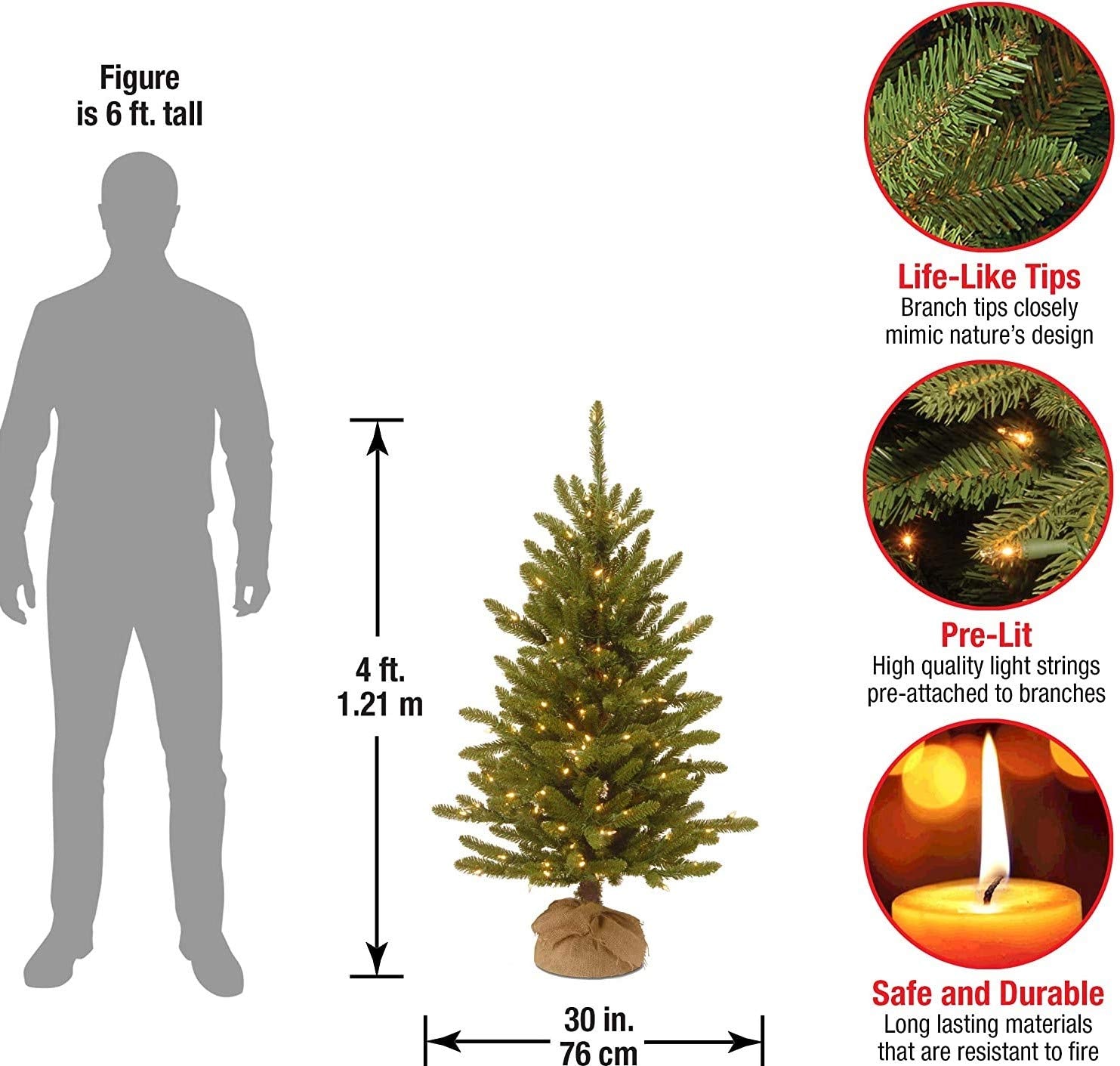 This Kensington Pre-Lit Artificial Green Christmas Tree is 4 feet tall with a 30 inch base diameter. Featuring hundreds of individually crafted branch tips to create full bodied branches, this tree is designed to look and feel lifelike.