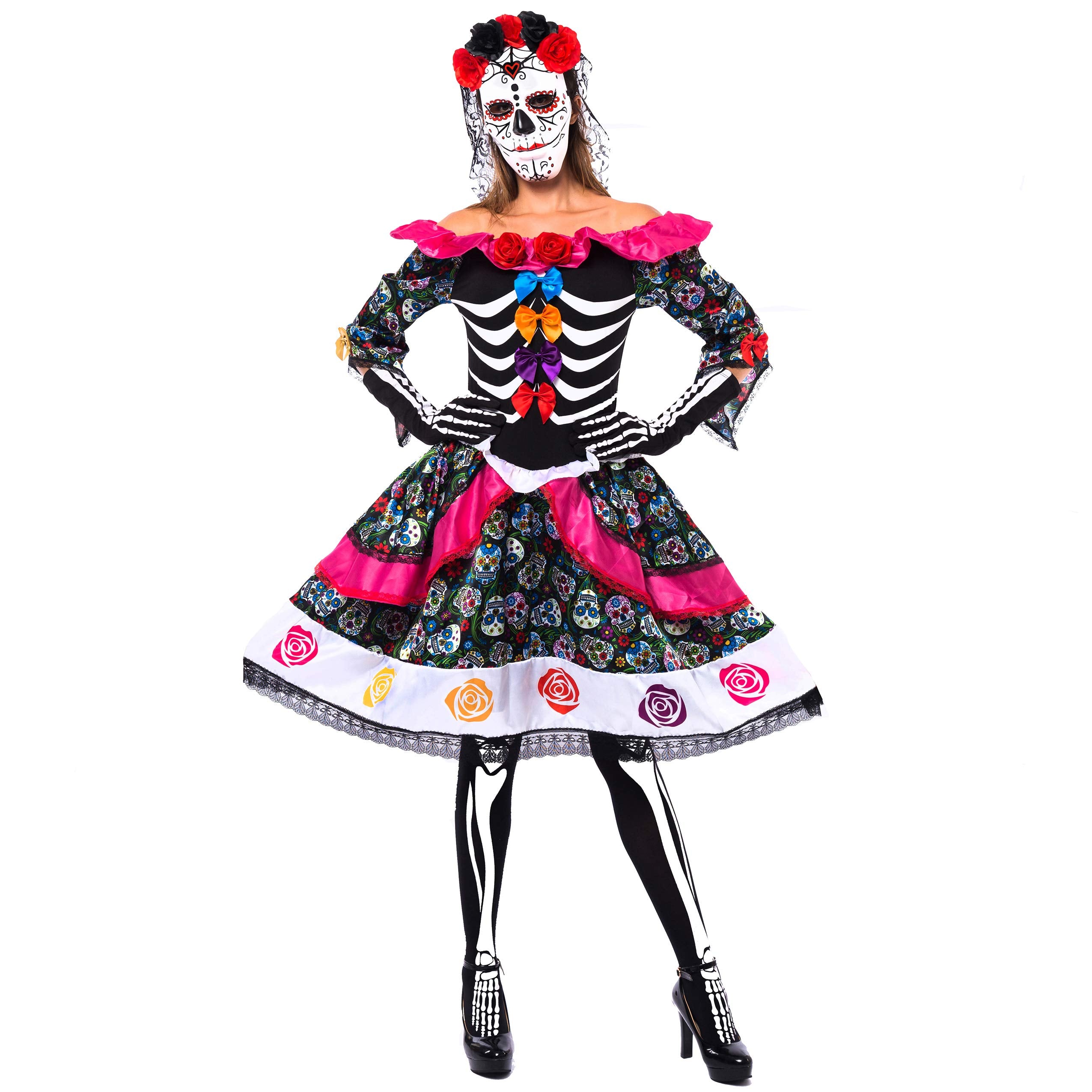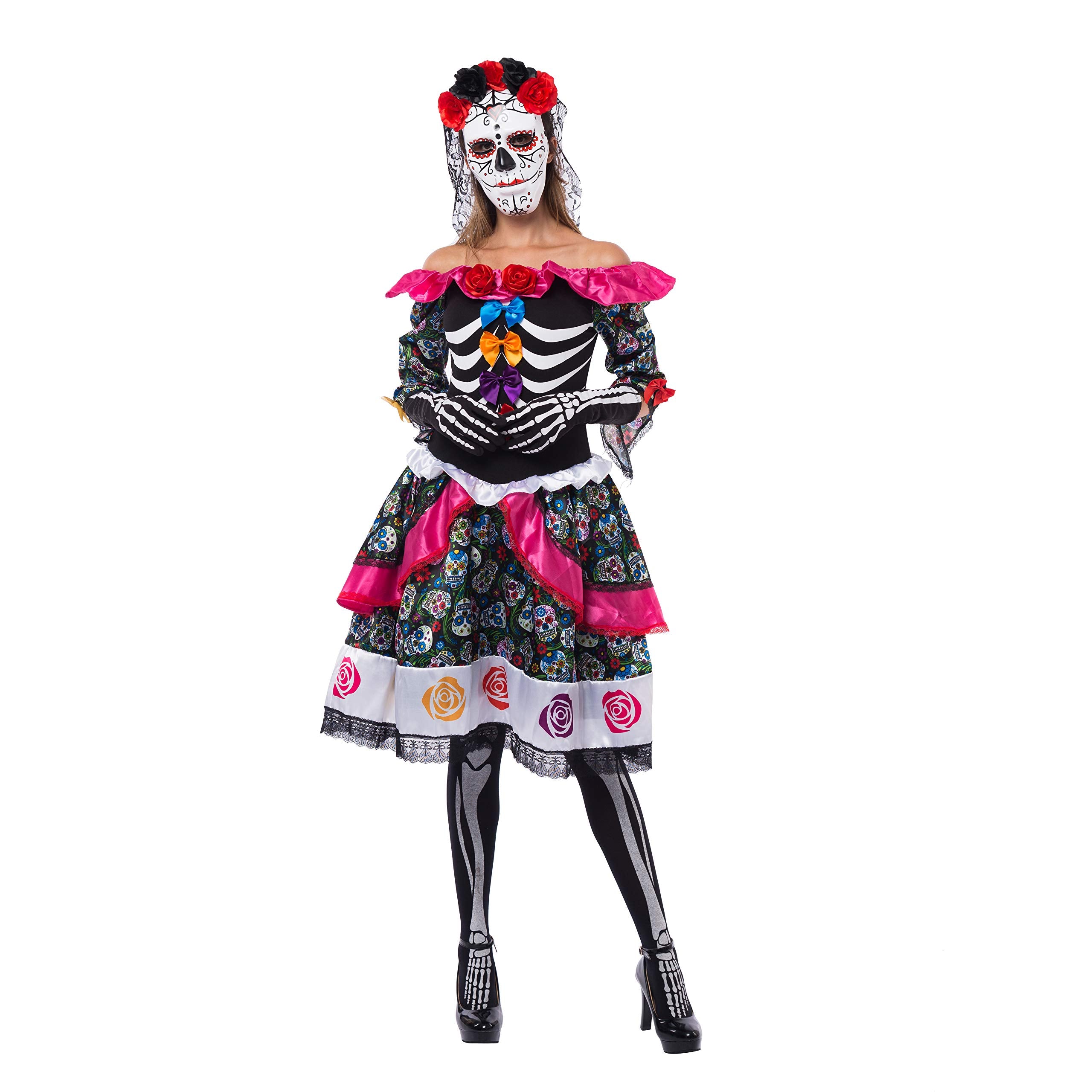 Women’s Day of the Dead Spanish Costume Set for Halloween Dress Dia Muertos
