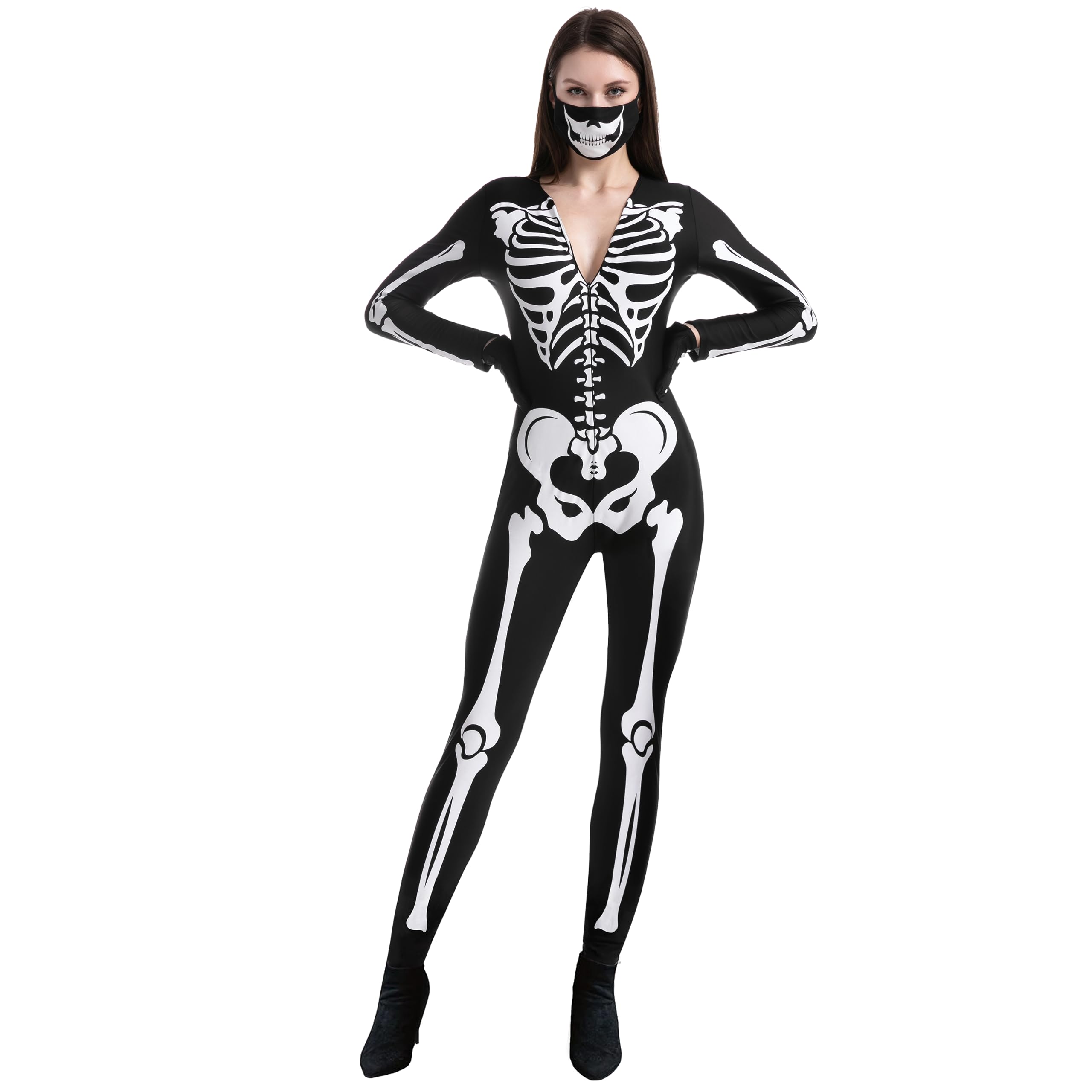 Our halloween Costume includes 1 Skeleton Printed Adult V Neck Bodysuit