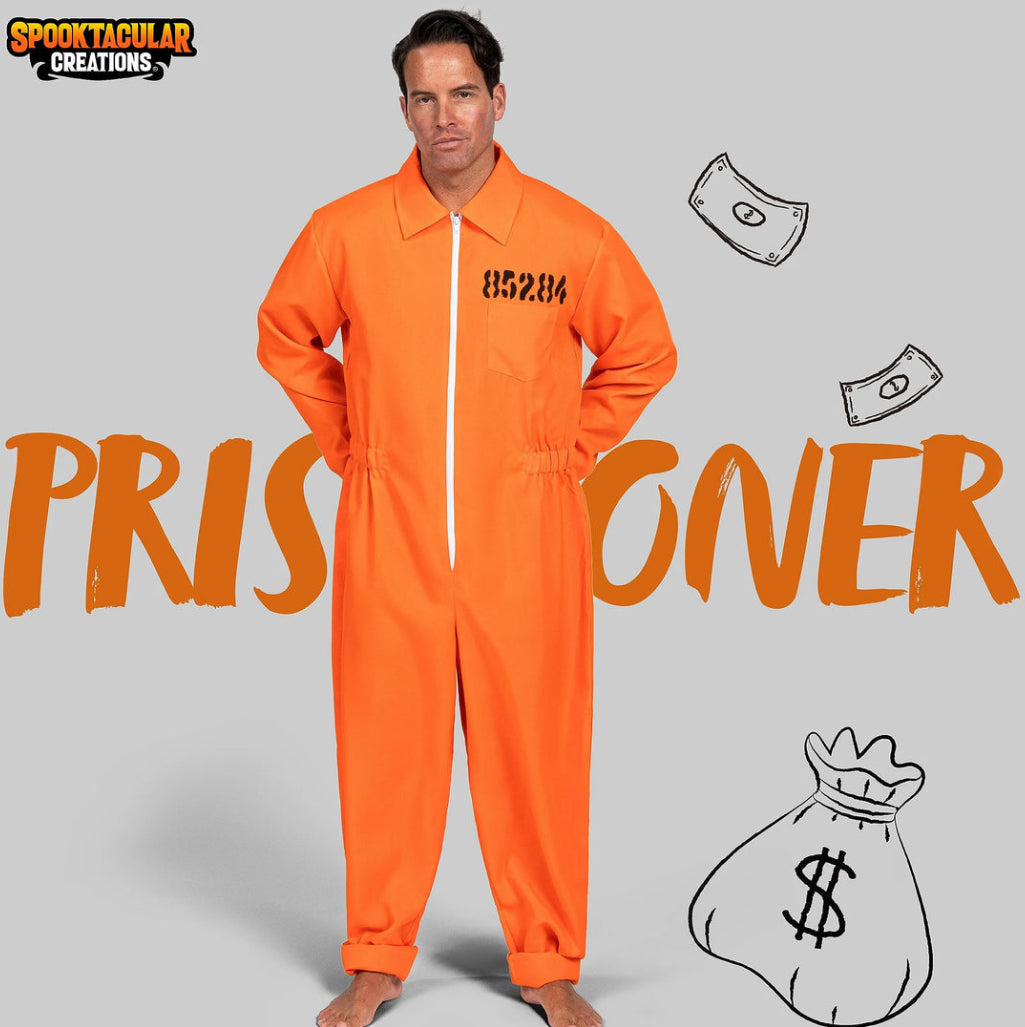 Jumpsuit Men's Orange Prisoner Escaped Inmate Jailbird Coverall Costume