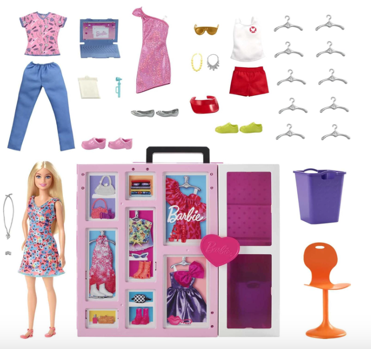 Barbie Doll and Dream Closet Set with Clothes and Accessories, 30+ Pieces and 15+ Storage Areas
