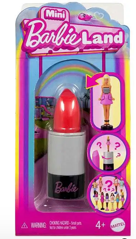 Enter the world of Barbie doll with Mini BarbieLand -- a place to imagine big and Dream in Mini! Designed to surprise, these mini Fashionistas are ready for play or displayonce revealed. To find out which doll is inside the lipstick tube, twist the tube and watch a 1.5-inch Barbie or Ken doll rise up for a teeny surprise and big fun! Each bends at the waist and stands on a heart-shaped base that fits into Mini BarbieLand playsets (sold separately). Fans ages 6 years and older will want to collect all these cute dolls to build their own mini world! Each sold separately, subject to availability. Colors and decorations may vary.