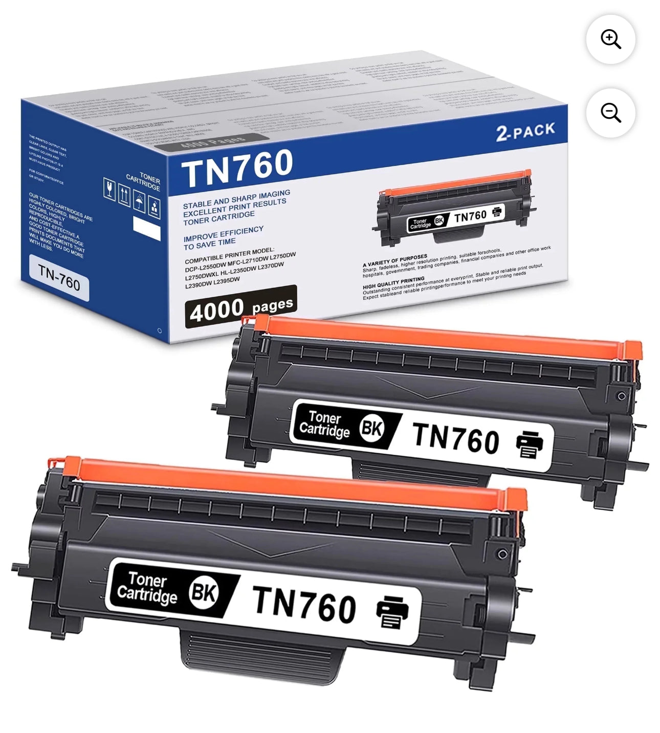 TN760 TN 760 Toner Cartridge Black 2-Pack Replacement for Brother TN760 TN 760 TN-760 TN730 TN 730 Toner for MFC-L2710DW MFC-L2750DW HL-L2370DW HL-L2395DW DCP-L2550DW Printer