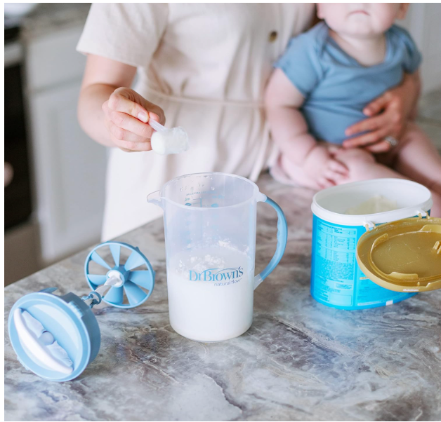 Dr. Brown's Baby Formula Mixing Pitcher with Adjustable Stopper, Locking Lid, & No Drip Spout, 32oz