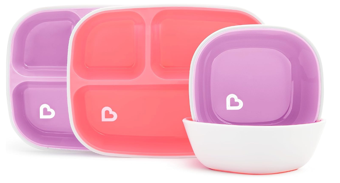 Munchkin® Splash™ 4 Piece Toddler Divided Plate and Bowl Dining Set, Pink/Purple