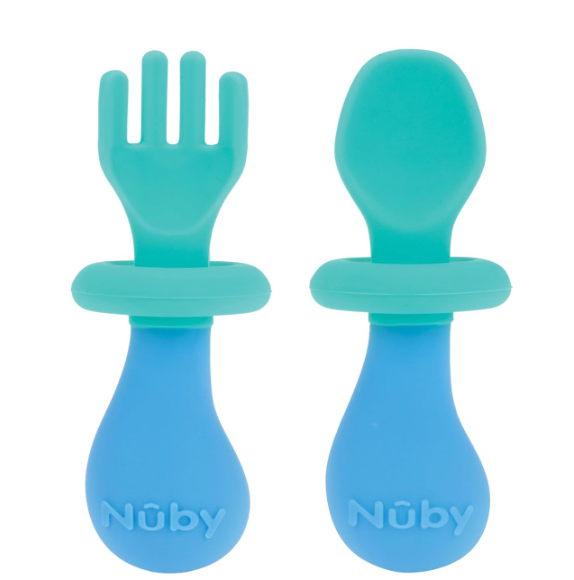 Nuby First Fork and Spoon Set - Utensils with Safety Guards for Babies