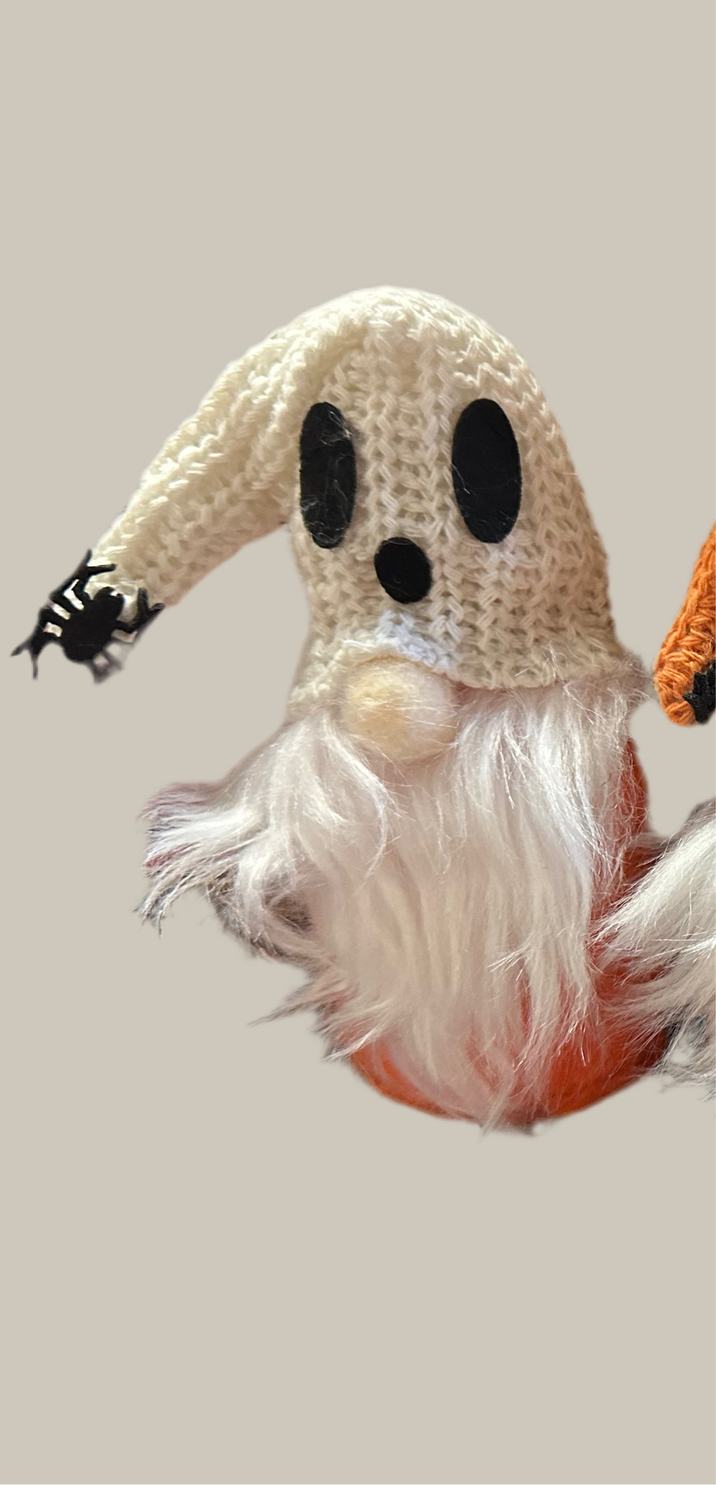Spooky Halloween gnomes 4.5” Ghost, Pumpkin, Bat w/skull