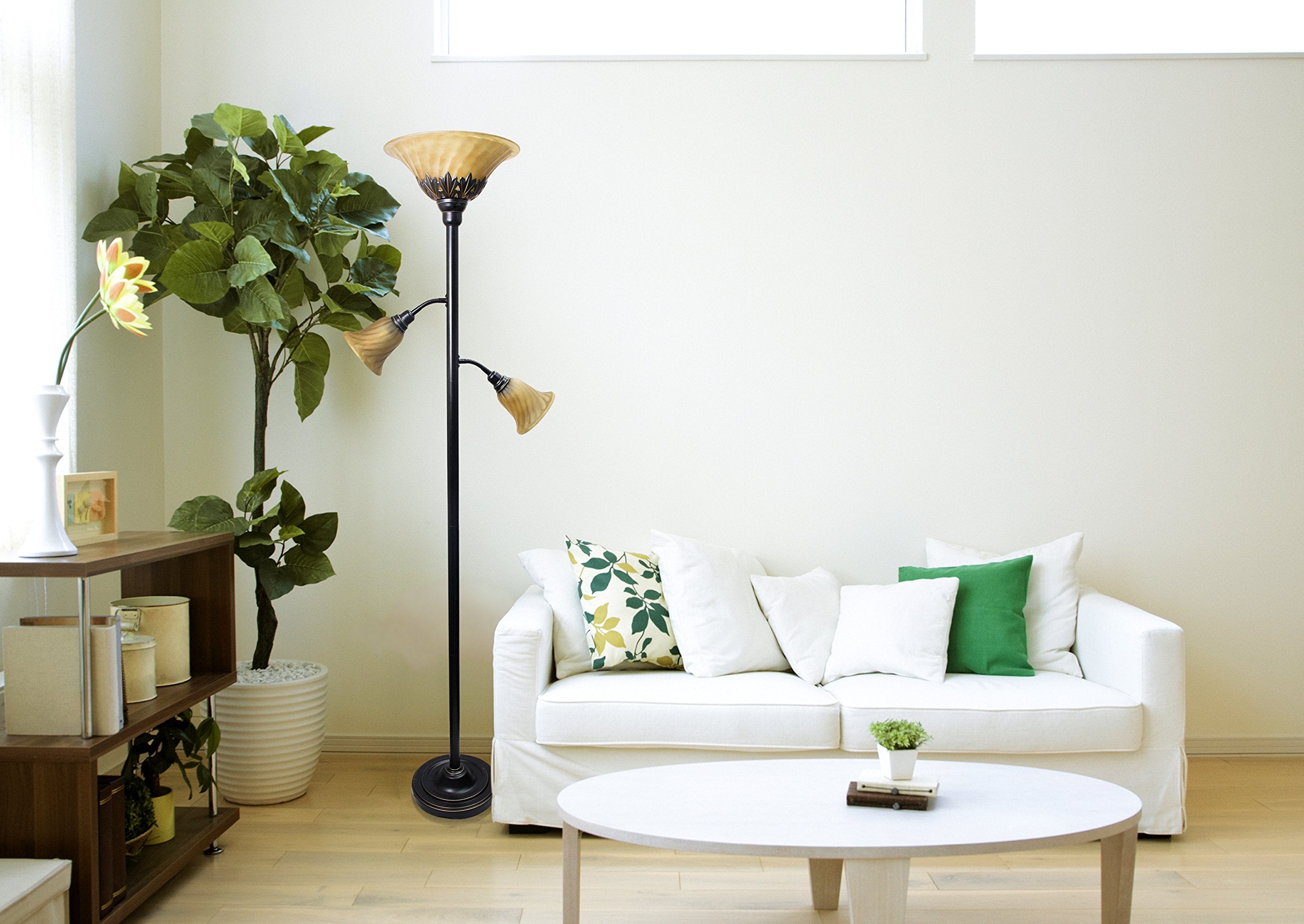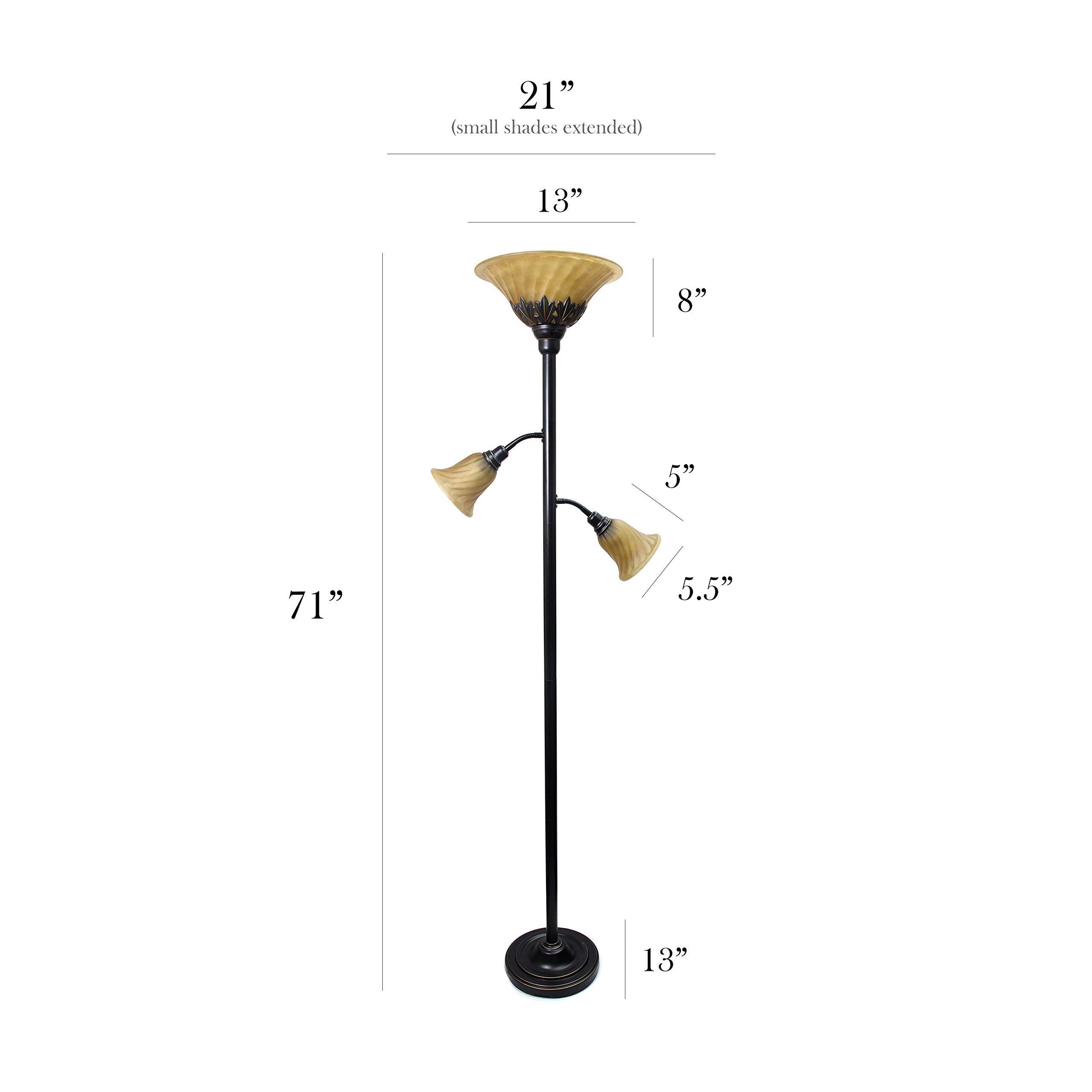Elegant Designs LF2002-RBZ 3 Light Floor Lamp with Scalloped Glass Shades, Restoration Bronze/Champagne