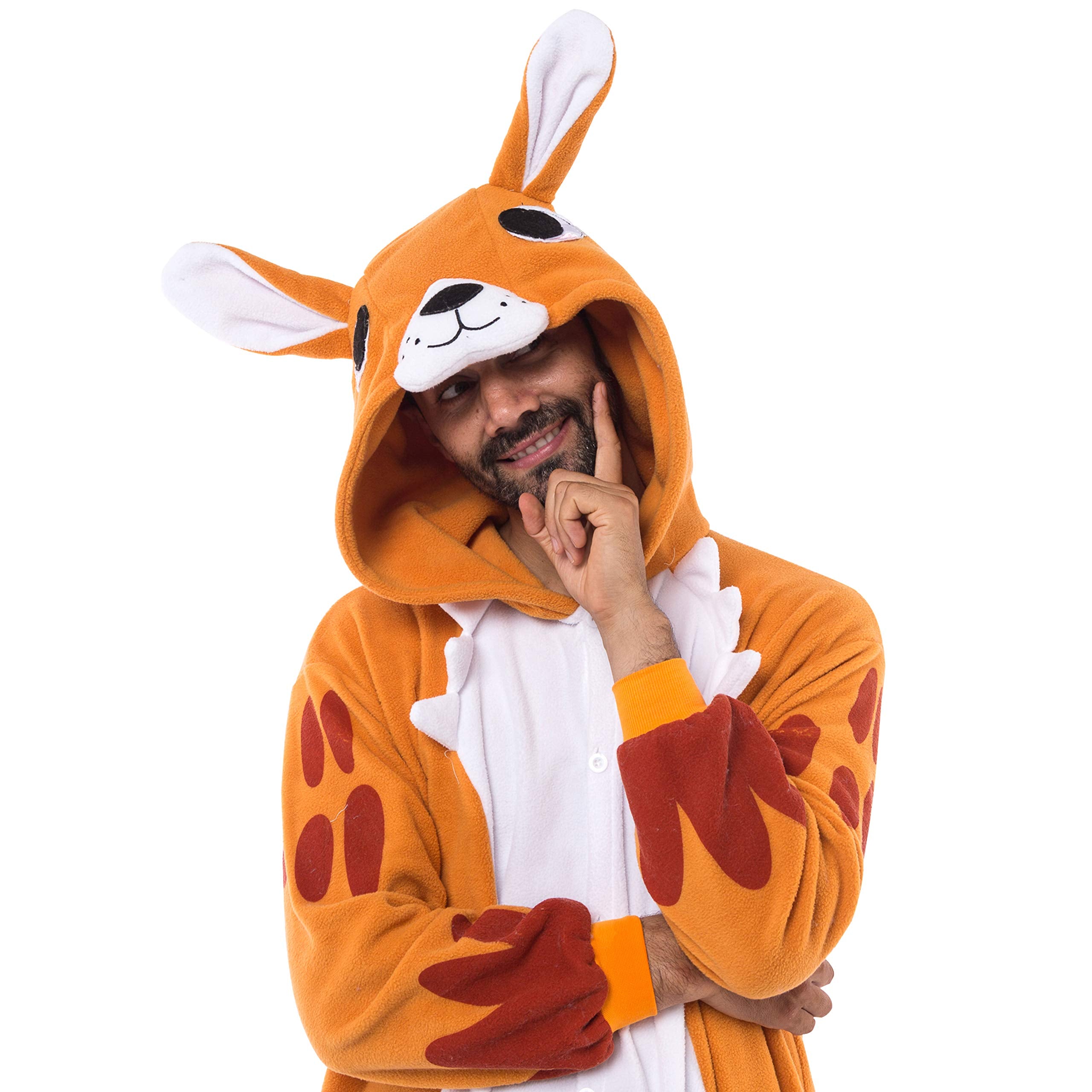Deluxe Version of Kangaroo Pajamas One Piece plush dressing up Animal Costume jumpsuit. Adult Size. Made with High Quality Plush Fleece Materials.