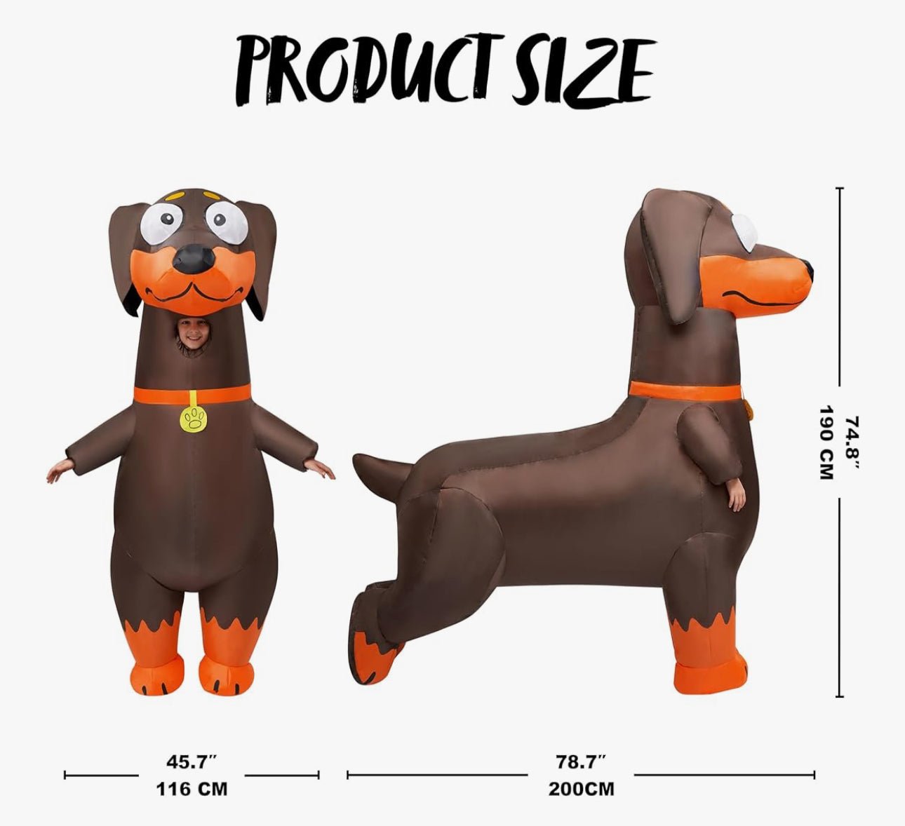 - Multiple Sizes: This full body dachshund blow up costume is specially designed for children's sizes, the costume fits up to 4'7" in height, ensuring a perfect fit for your little one!The minimum applicable age for our products is 3 years old.