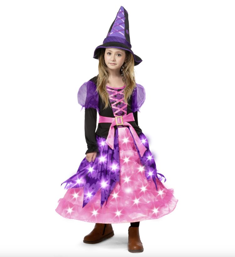 Spooktacular Creations Child Girl Pinky Light up Witch Costume Includes Witch’s Matching Hat, and light up Dress.