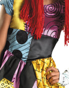 The Tween Girls Sally Costume for Girls includes a dress, petticoat, glovettes and wig! This Halloween become the memorable rag doll adored by Jack Skellington! This costume features a short dress with multicolored, shiny patches and a white petticoat to give the dress some volume. The costume also includes glovettes with stitching and a long red rag doll wig.