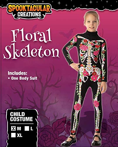 Girl Skeleton Floral Halloween Cosplay Day of the Dead Dress up Costume Jumpsuit