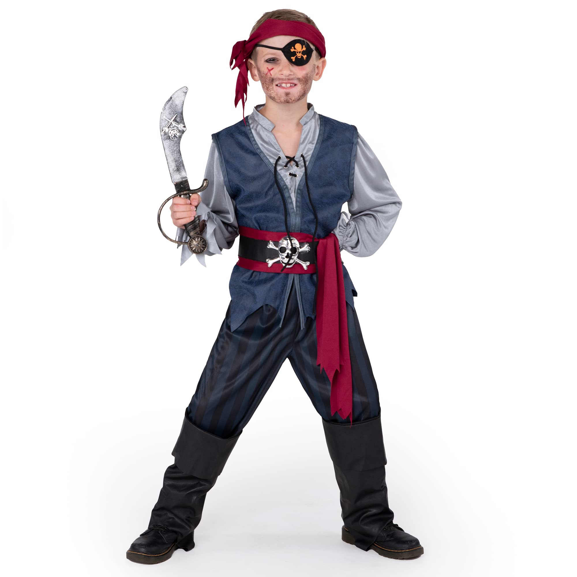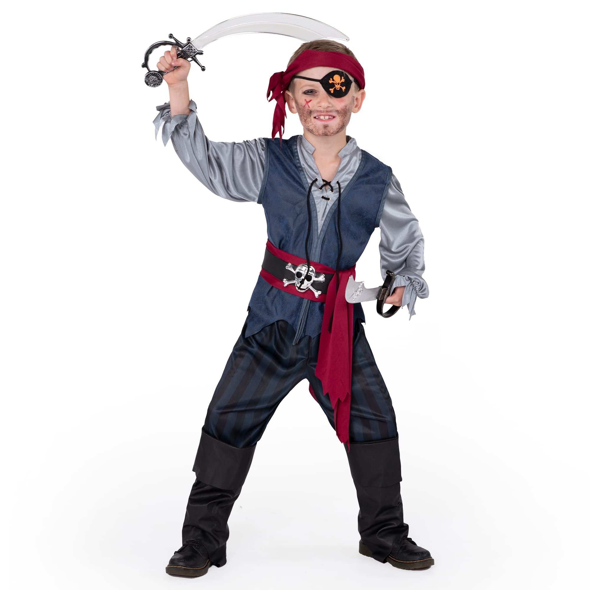 Child Pirate Captain Halloween Role play, Cosplay Dress up Deluxe Costume set