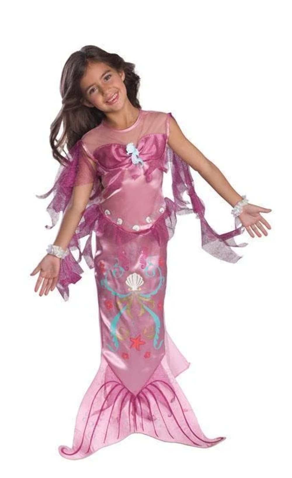 Girls Pink Mermaid Halloween Cosplay dress up pretend play Costume