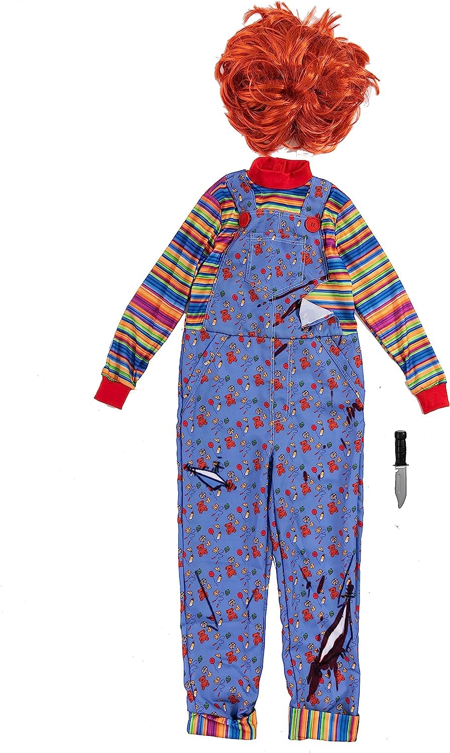 Kids Chucky maniac evil child Costume& Wig Halloween Cosplay (S) 5-7 yr
