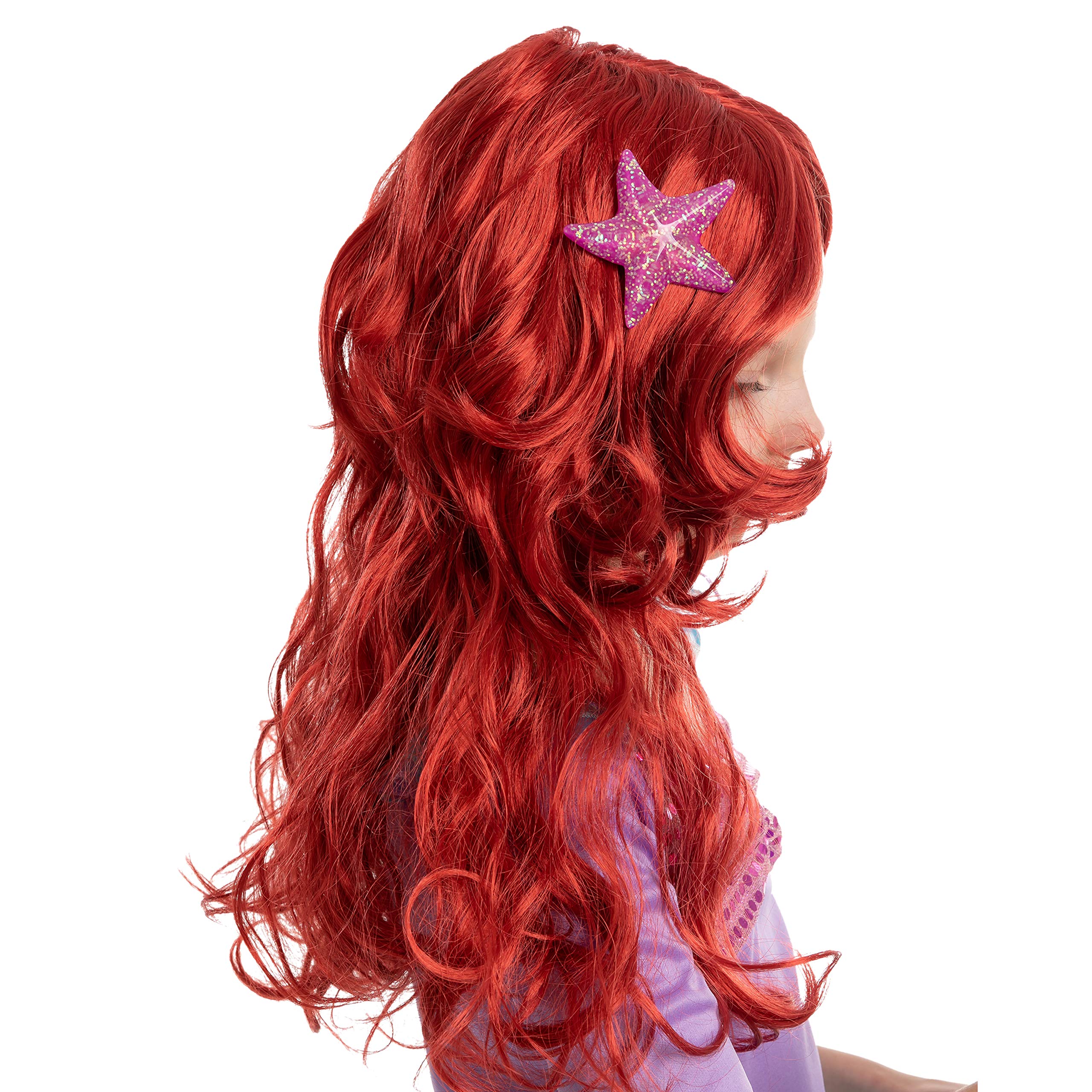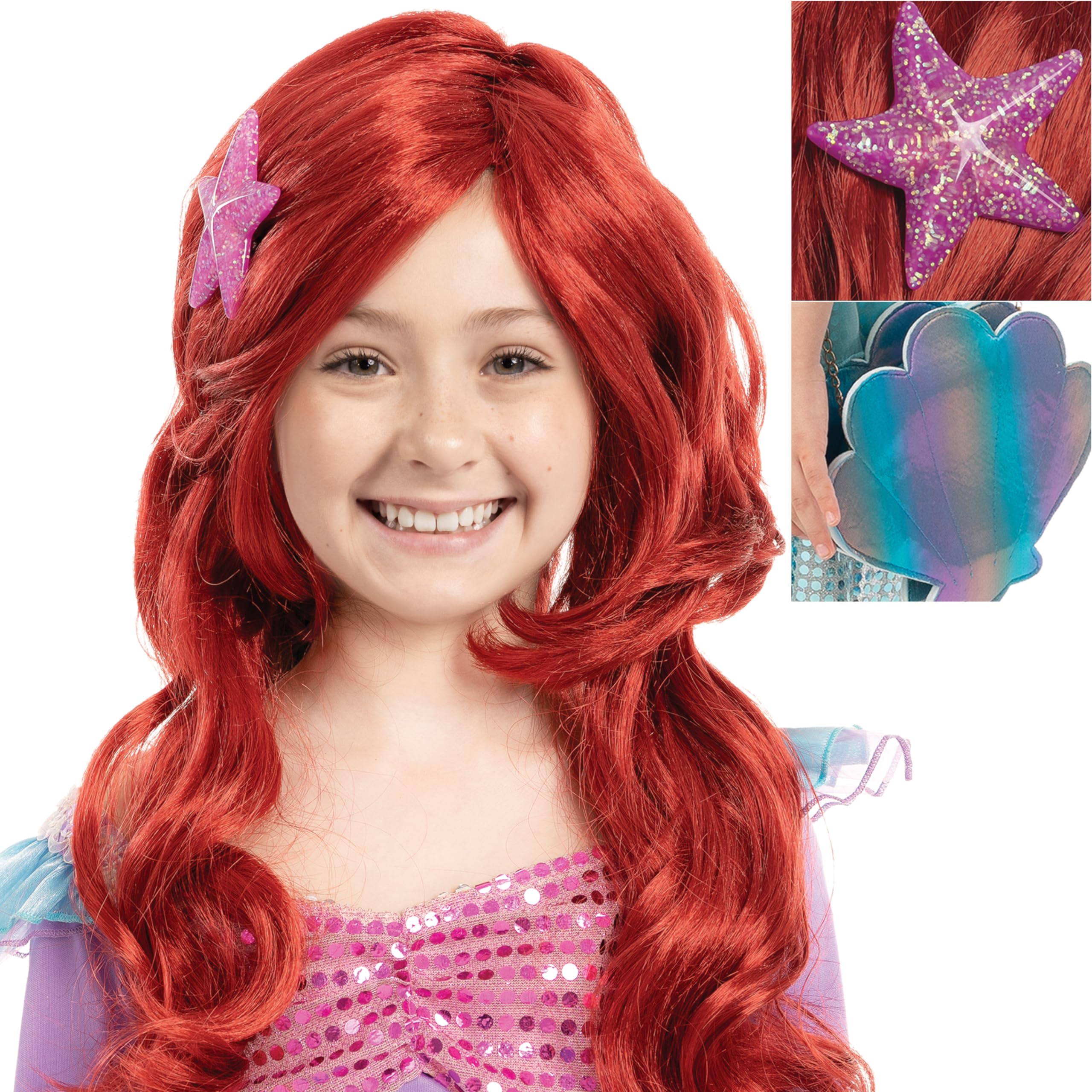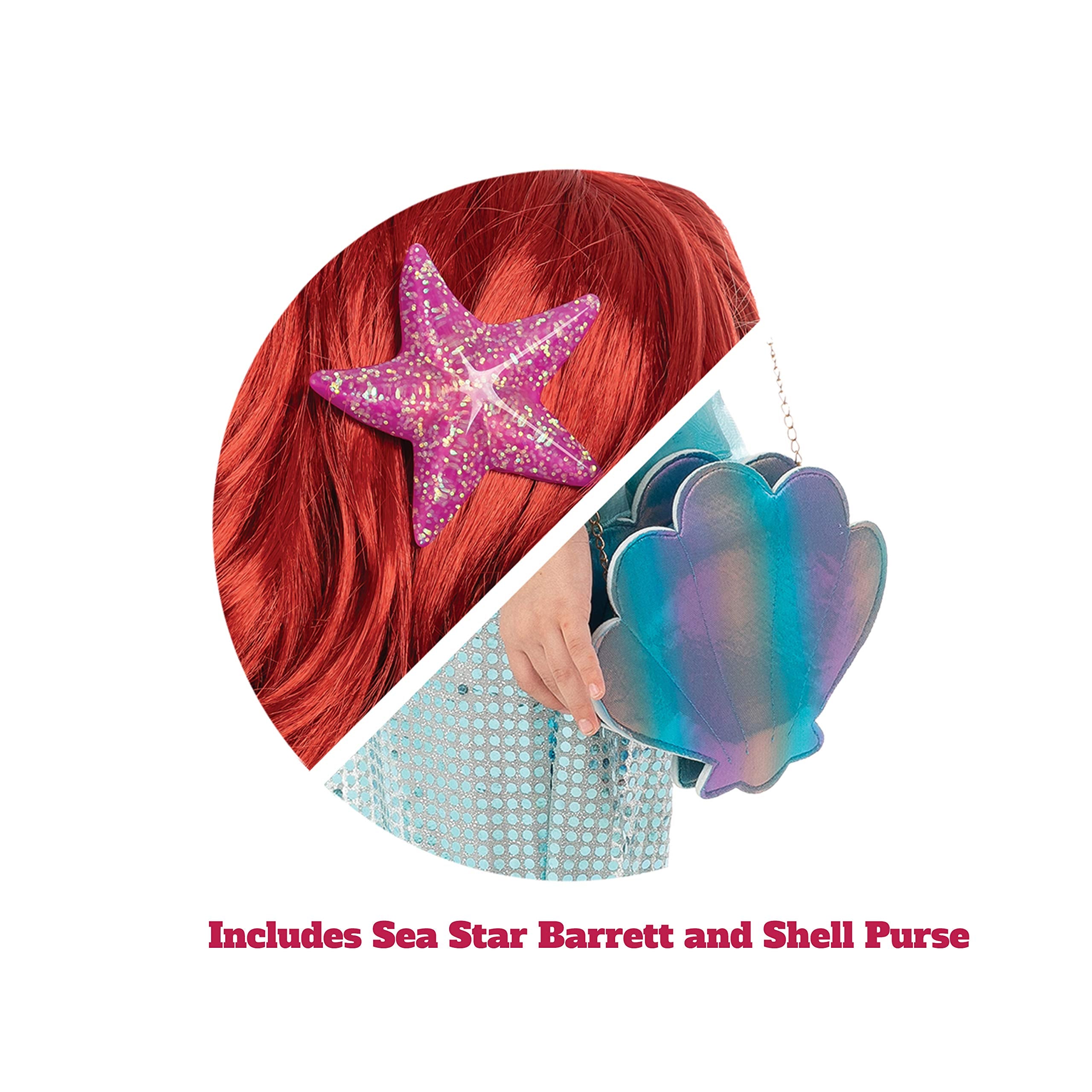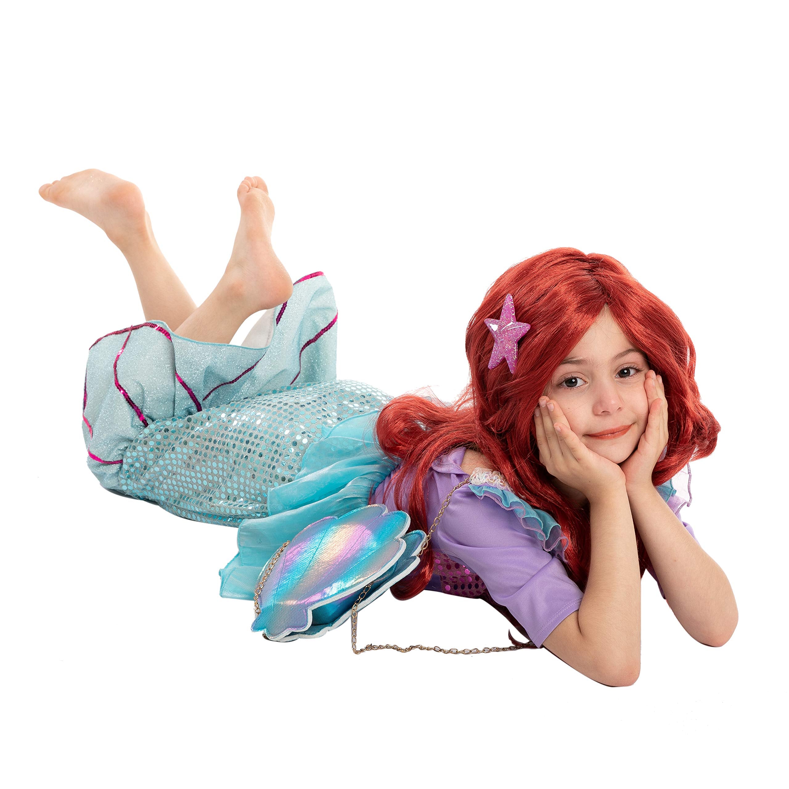 Girls Little Mermaid Red Long Curly Wig & Shell Purse Accessories Set
