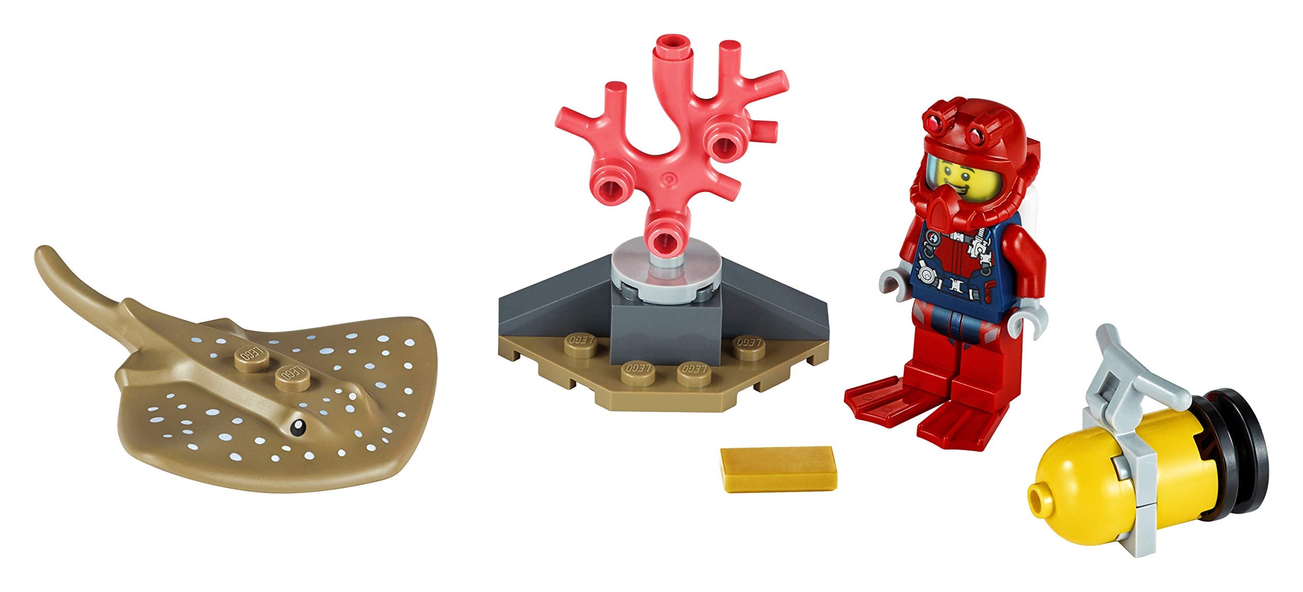 Kids can enjoy imaginative underwater exploration with this fun set, featuring a diver minifigure with a deep-sea scooter, plus a coral reef setting and a stingray figure.Build an underwater adventure!
