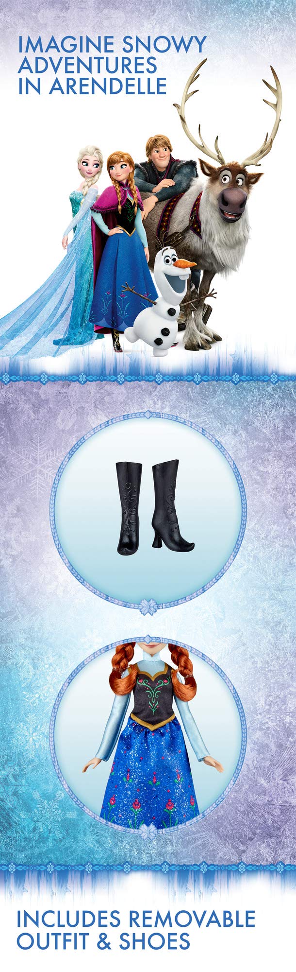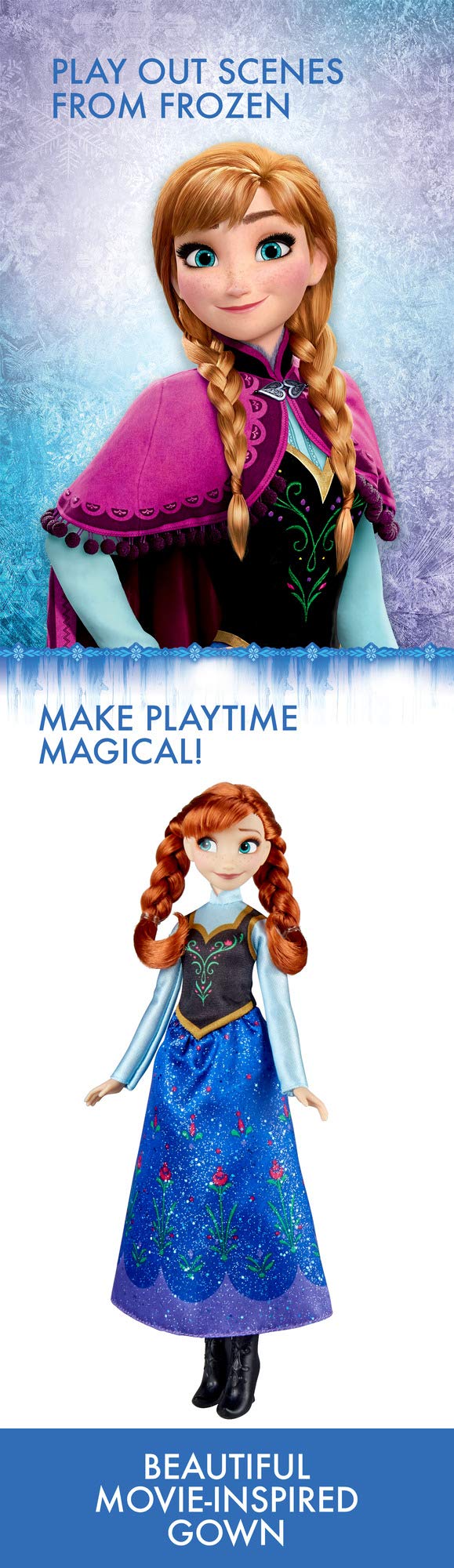 A free spirit, Anna is fiercely loyal, determined, and courageous. Imagine snowy adventures in Arendelle with this Anna fashion doll from Disney's Frozen. She comes wearing her beautiful travel dress, just like in the movie! Girls will love playing out their favorite scenes, as well as imagining their own adventures with Anna.