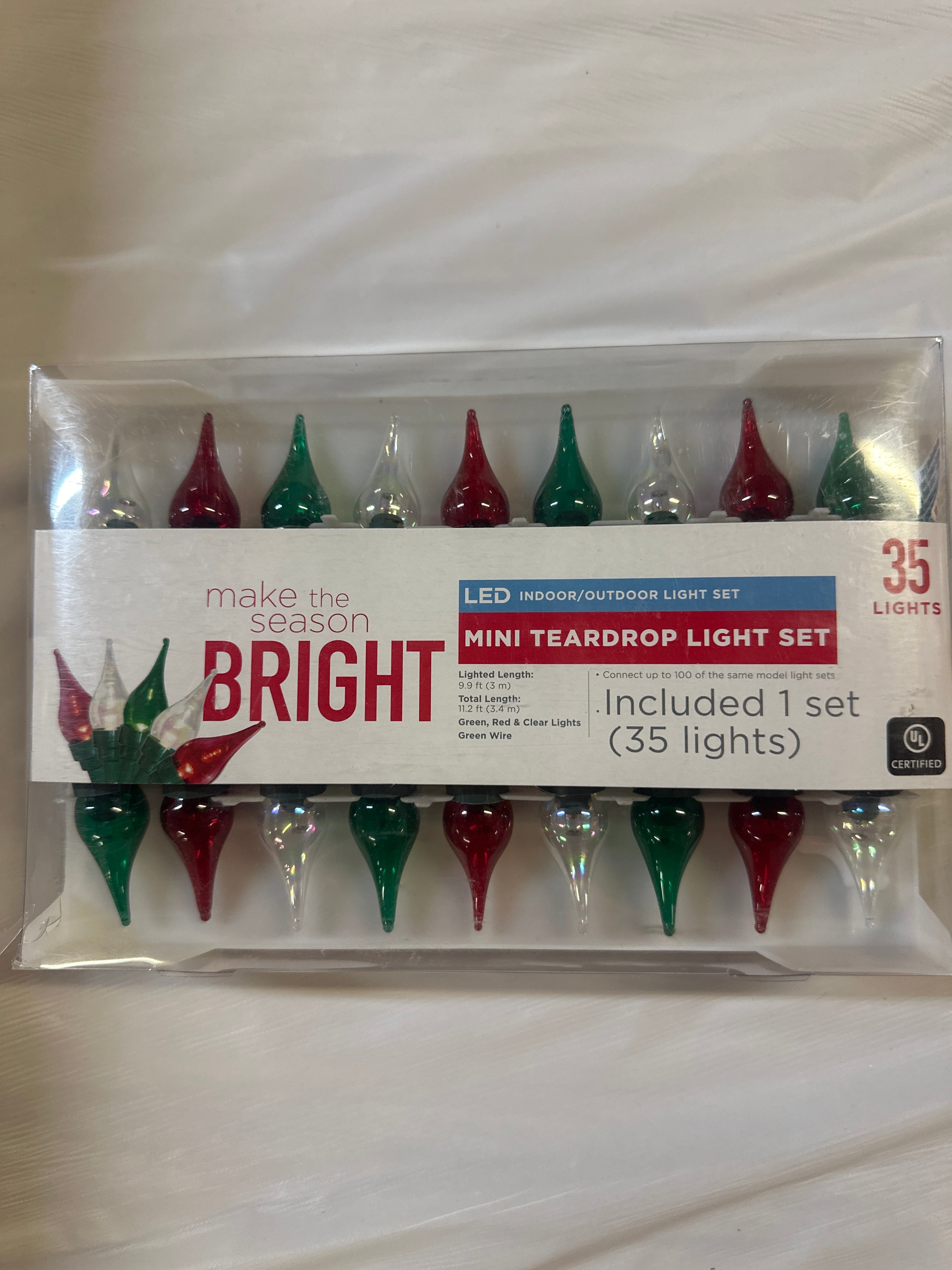 Mini teardrop lights set 35 count LED indoor outdoor.