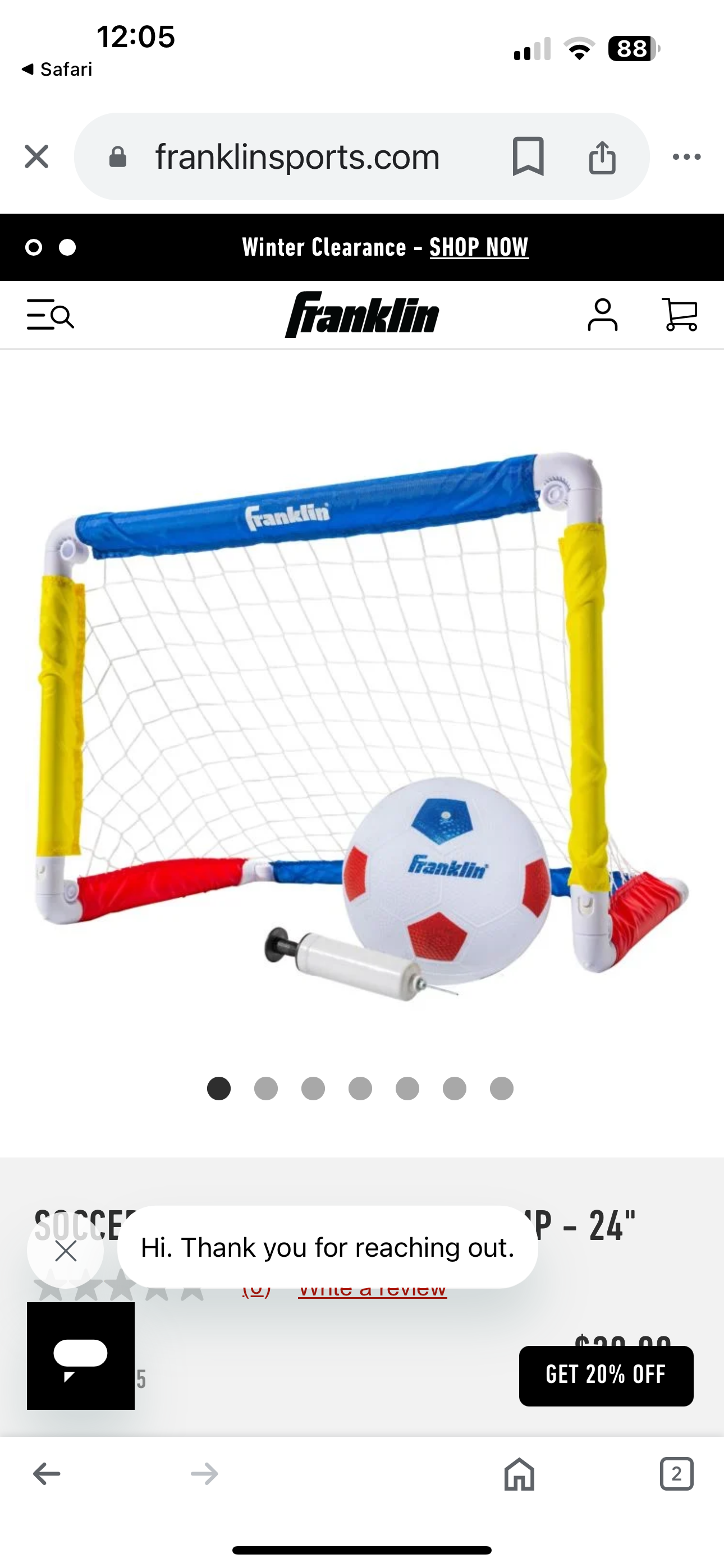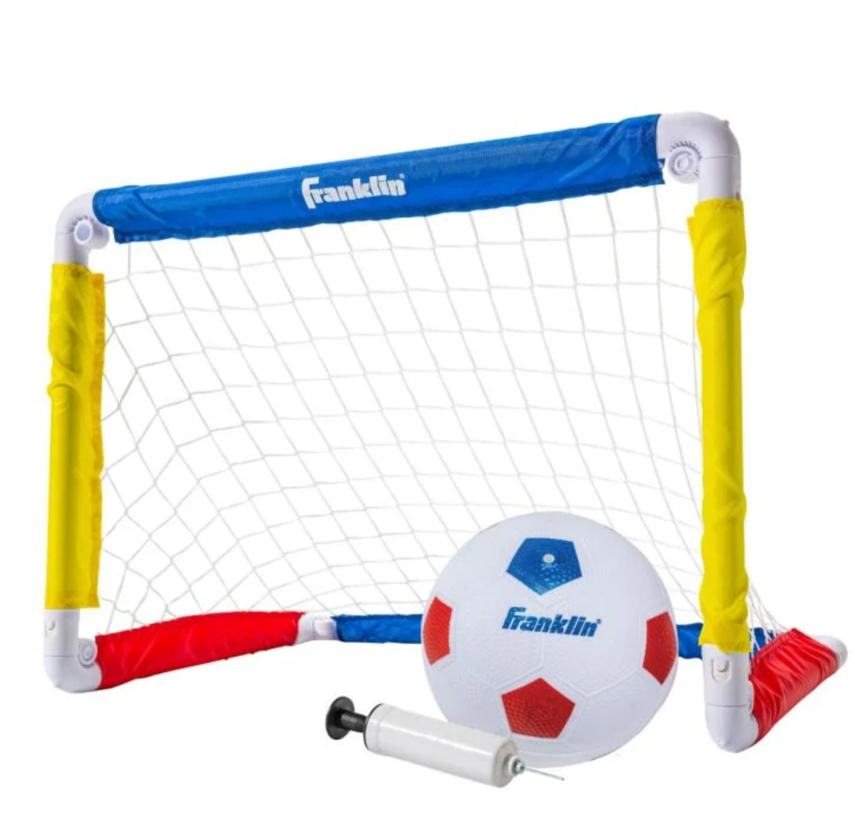 The Franklin Future Champs(R) Kids Soccer Goal was designed specifically to teach little athletes how to play the game of soccer for the first time! Develop the skills and fundamentals needed to begin to explore the sport while keeping it fun as your little Future Champs try to score on this perfectly sized goal. The set is designed for indoor and outdoor play, and the goal features easy-fold corner joints that allow for set up & break down in seconds! It is the perfect set for first-time athletes learning to play soccer, including an easy-fold goal, a rotation molded soccer ball and an inflation pump to get the game started!