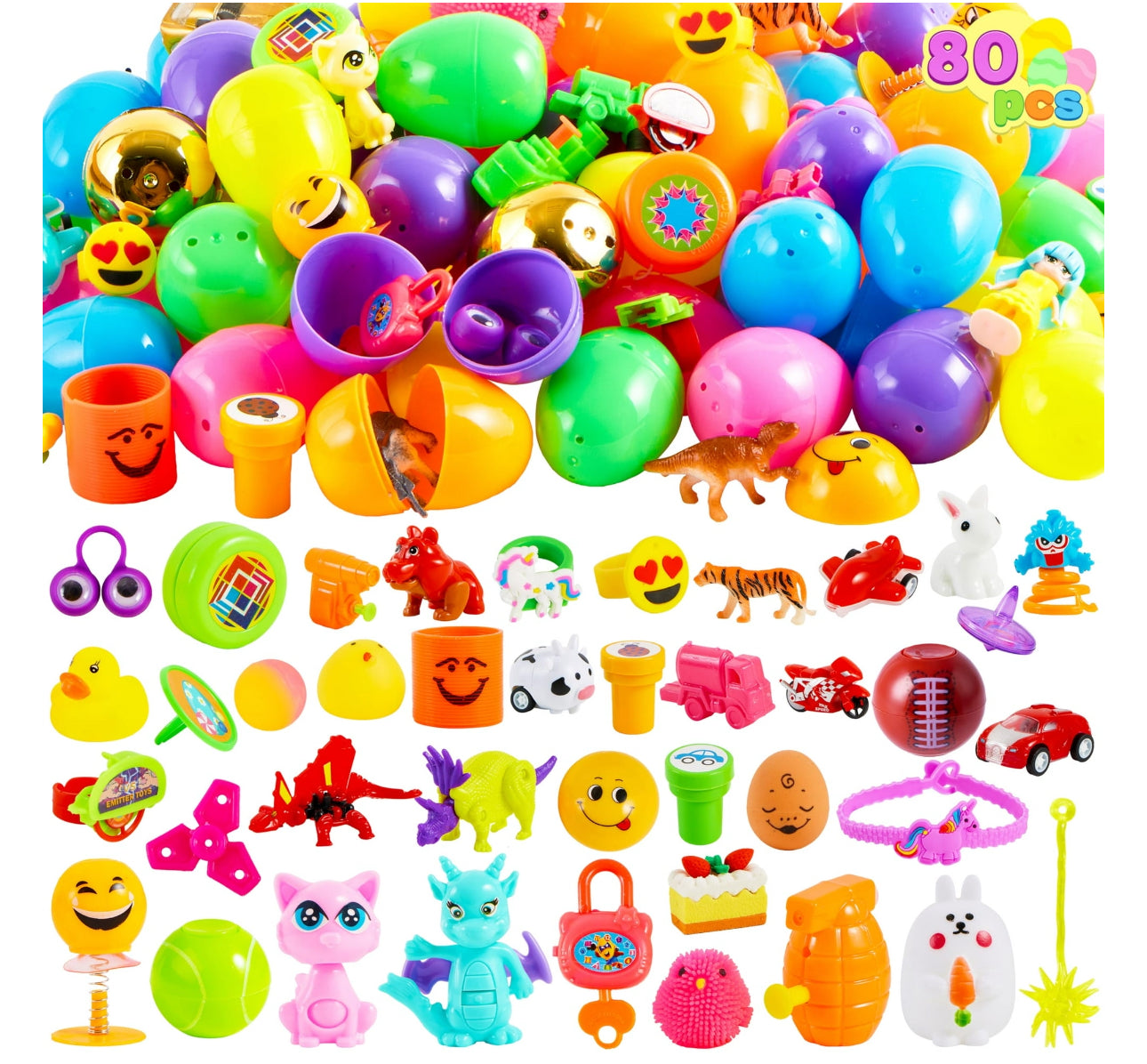 80 toy filled 2.3” Easter eggs with 2 gold eggs