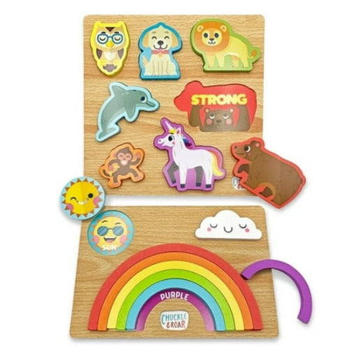 2pk Chuckle & Roar Wood Puzzles Rainbow Animals With Hidden Words Learning STEM